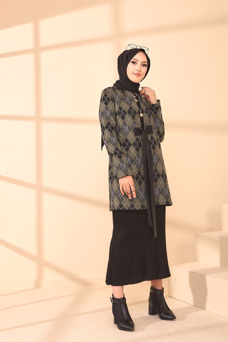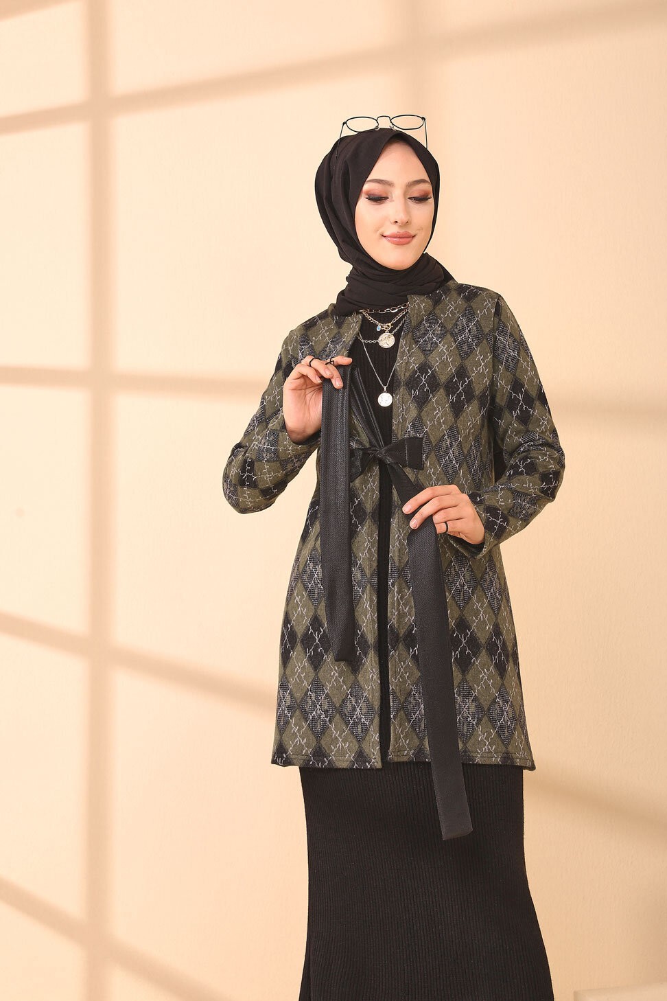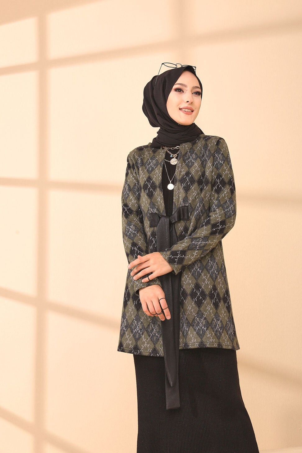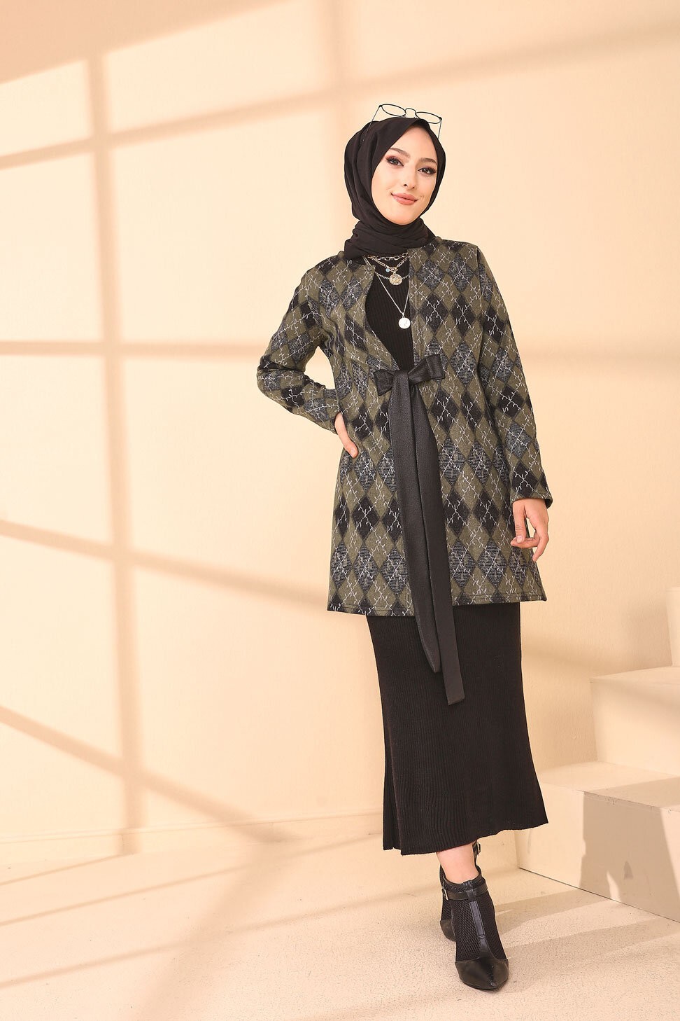 Veste Manteau femme avec ceinture integree (Tunique Automne Hiver - Boutique Vetement Hijab Turque en ligne) - Couleur noir et kaki