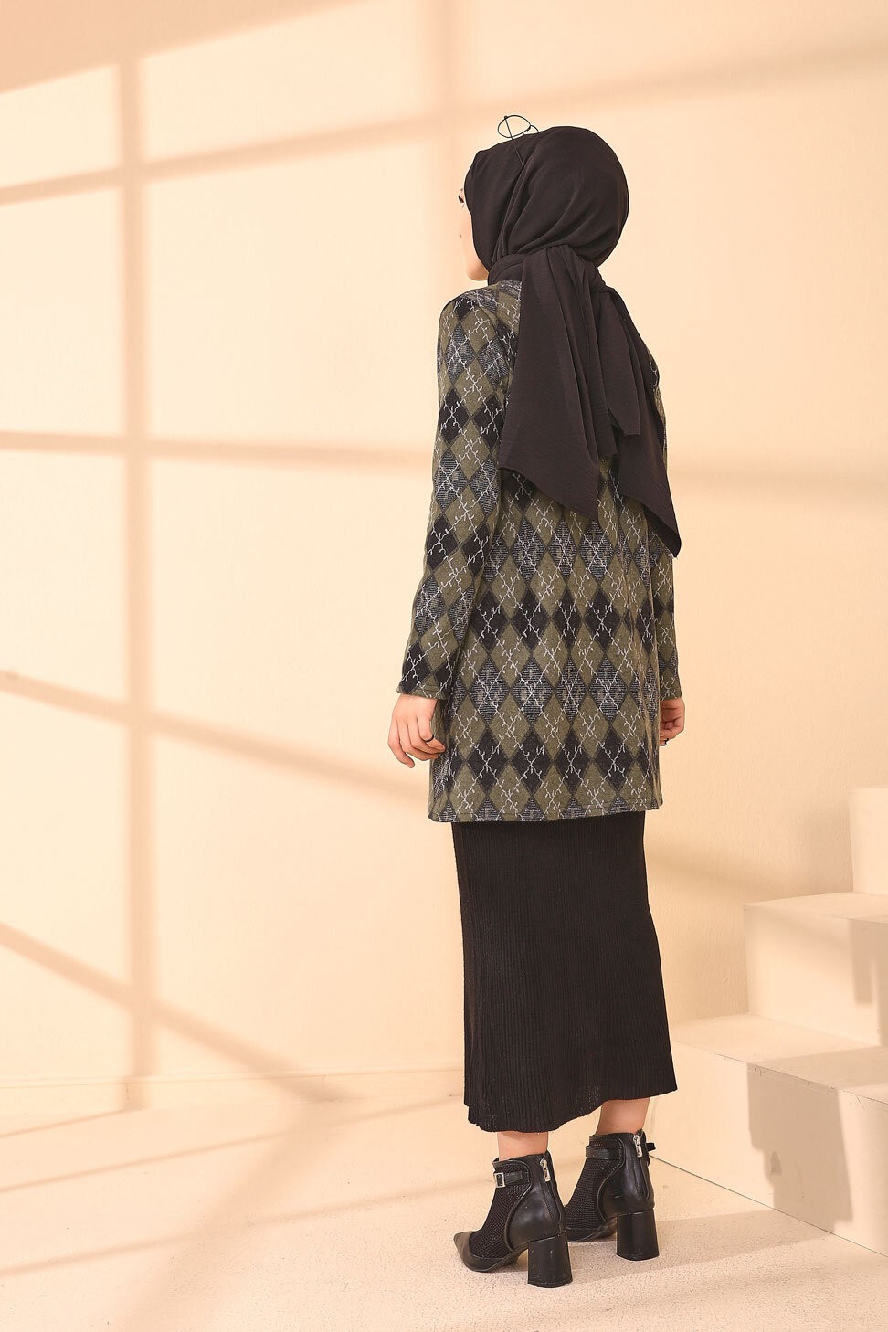 Chemise à carreaux (Boutique vêtements modernes turque pour femme) - Couleur noir et kaki - REF. 35166 (24.90 €)