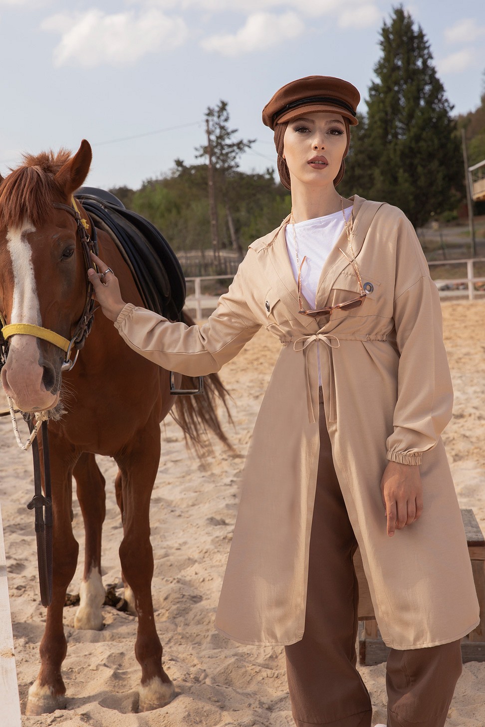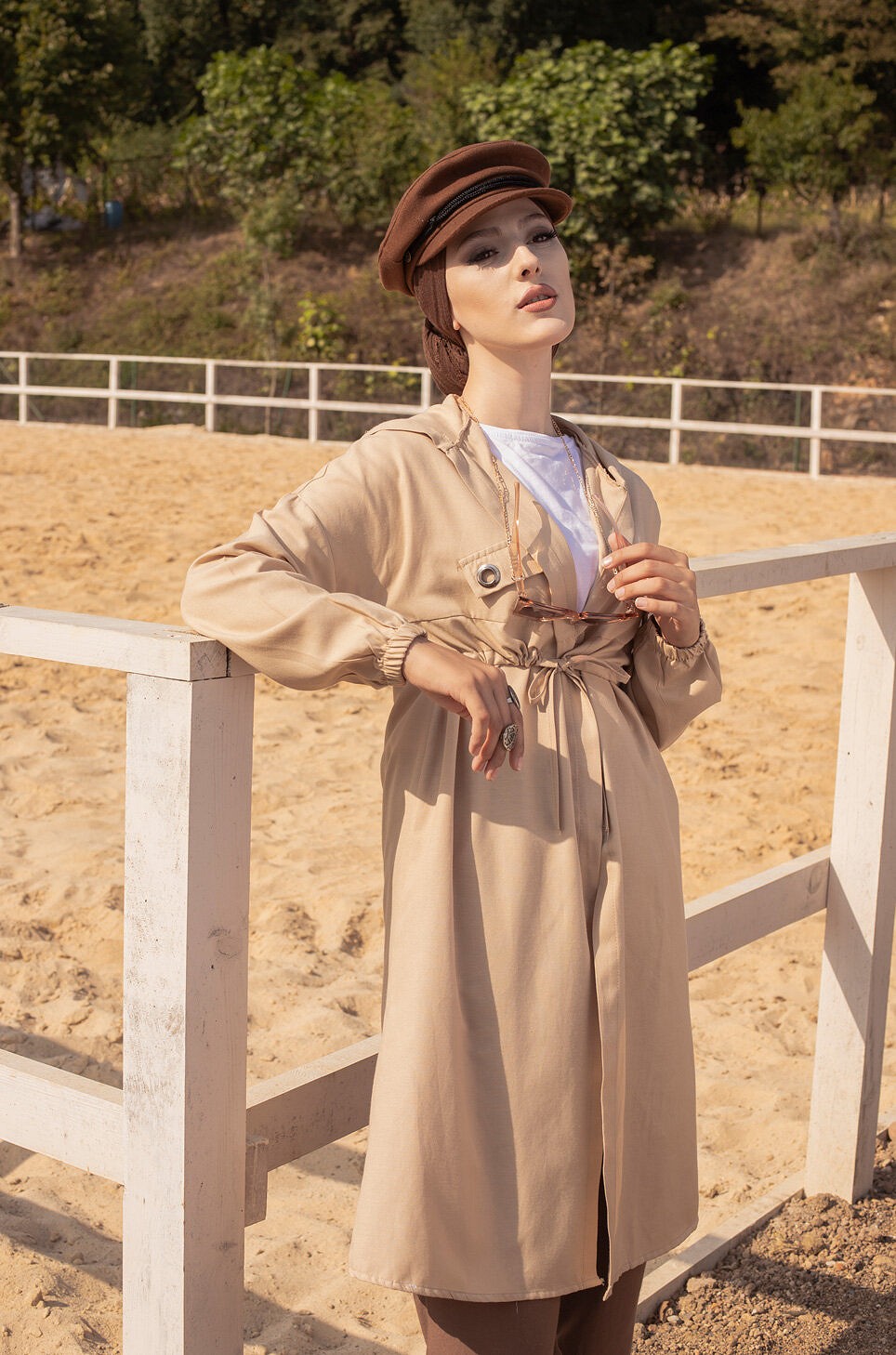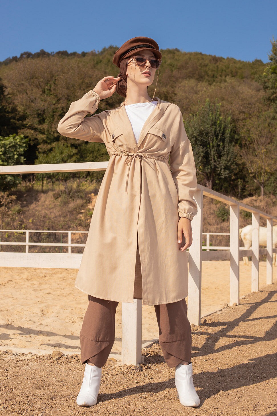 Veste-Trench à capuche pour femme - Couleur beige Vetement & Accessoire