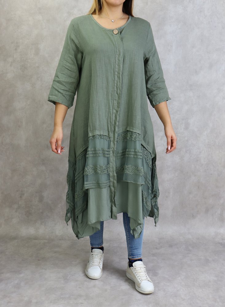Veste-Tunique longue et evasee pour femme - Couleur kaki clair
