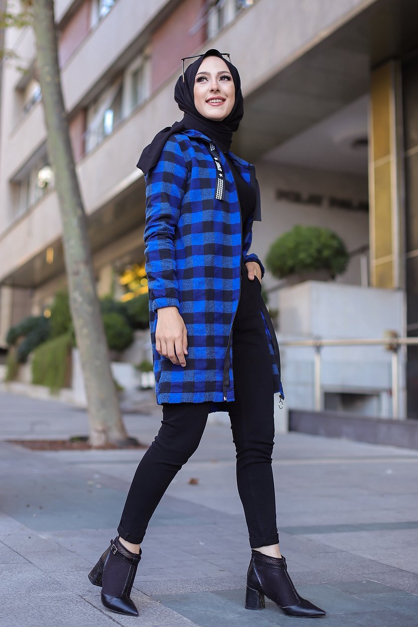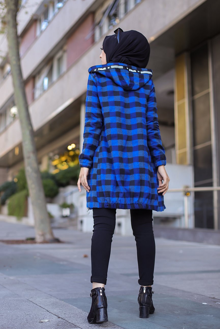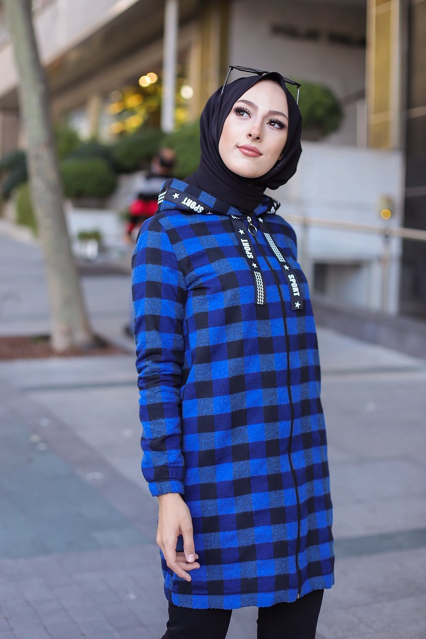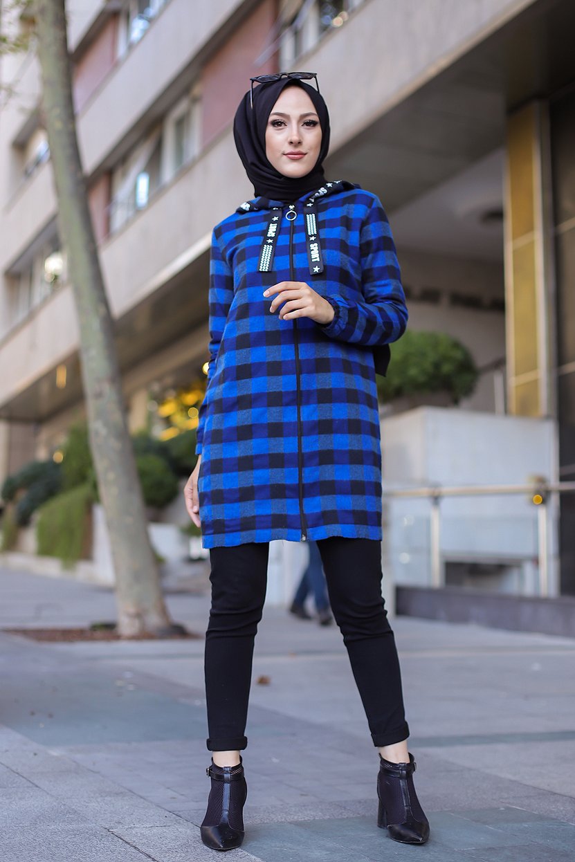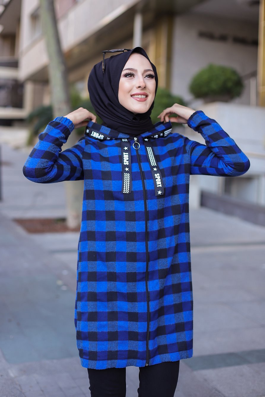 Veste-Tunique zippée à capuche (Tenue Hijab Automne Hiver) - Couleur bleu roi Vetement & Accessoire