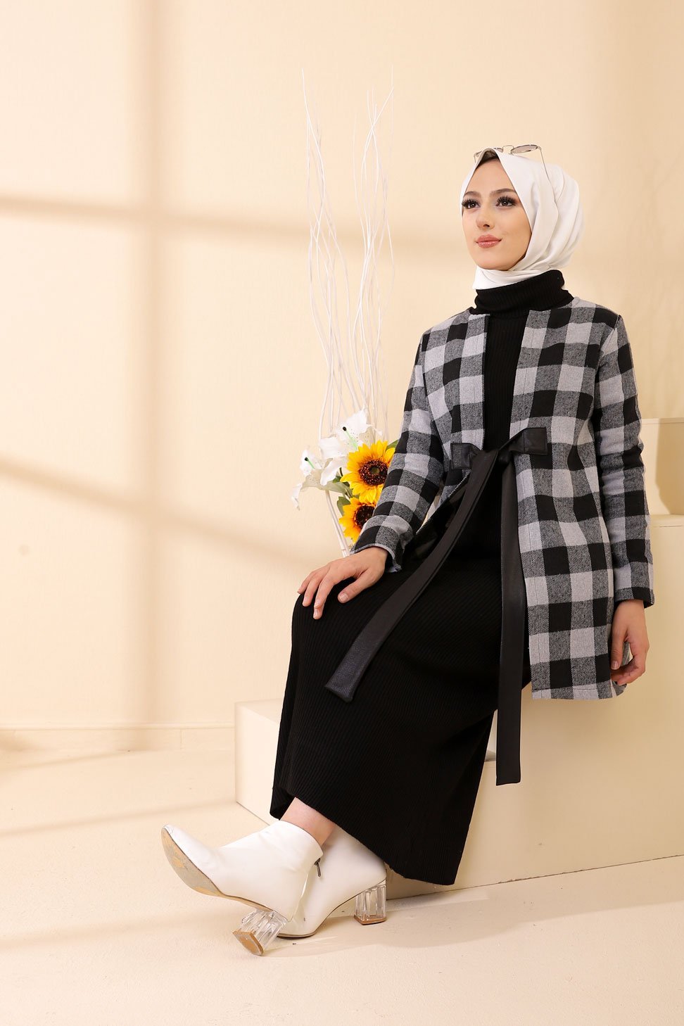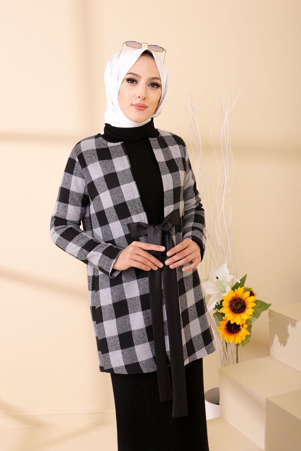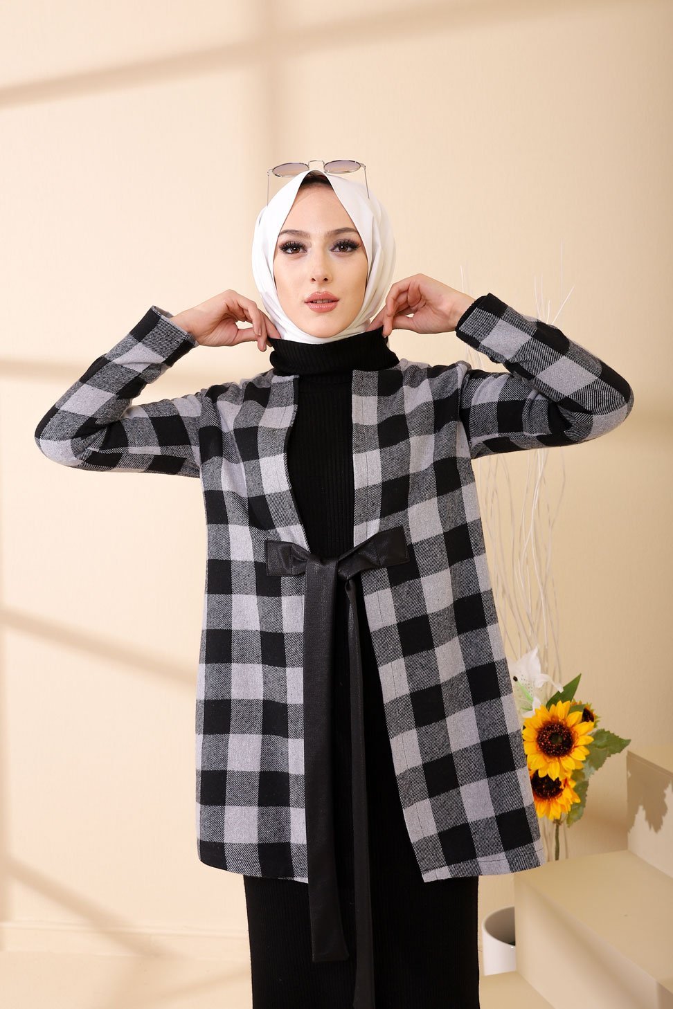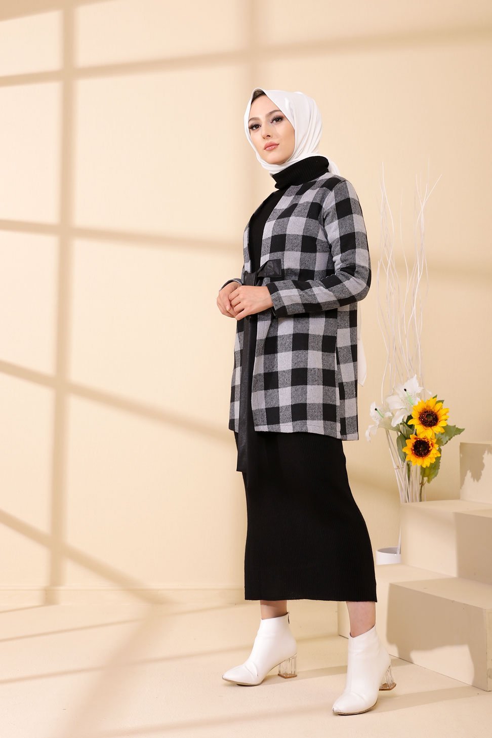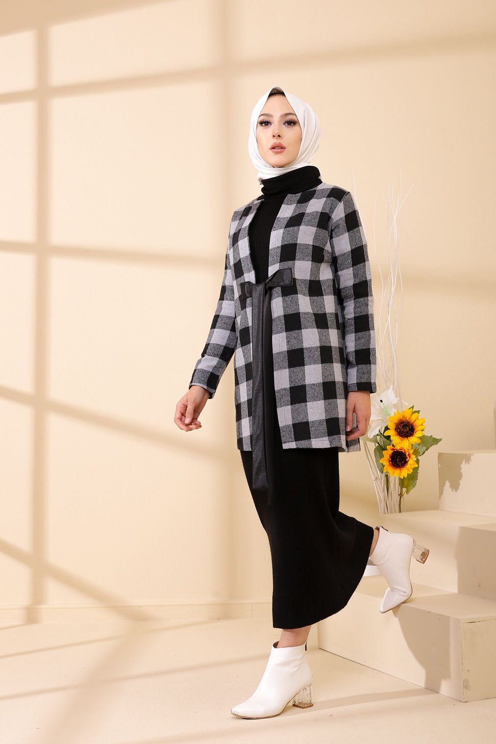 Chemise-Tunique boutonnée à carreaux pour femme (Vêtement Mode Musulmane Automne Hiver) - Couleur gris - REF. 35212 (26.90 €)