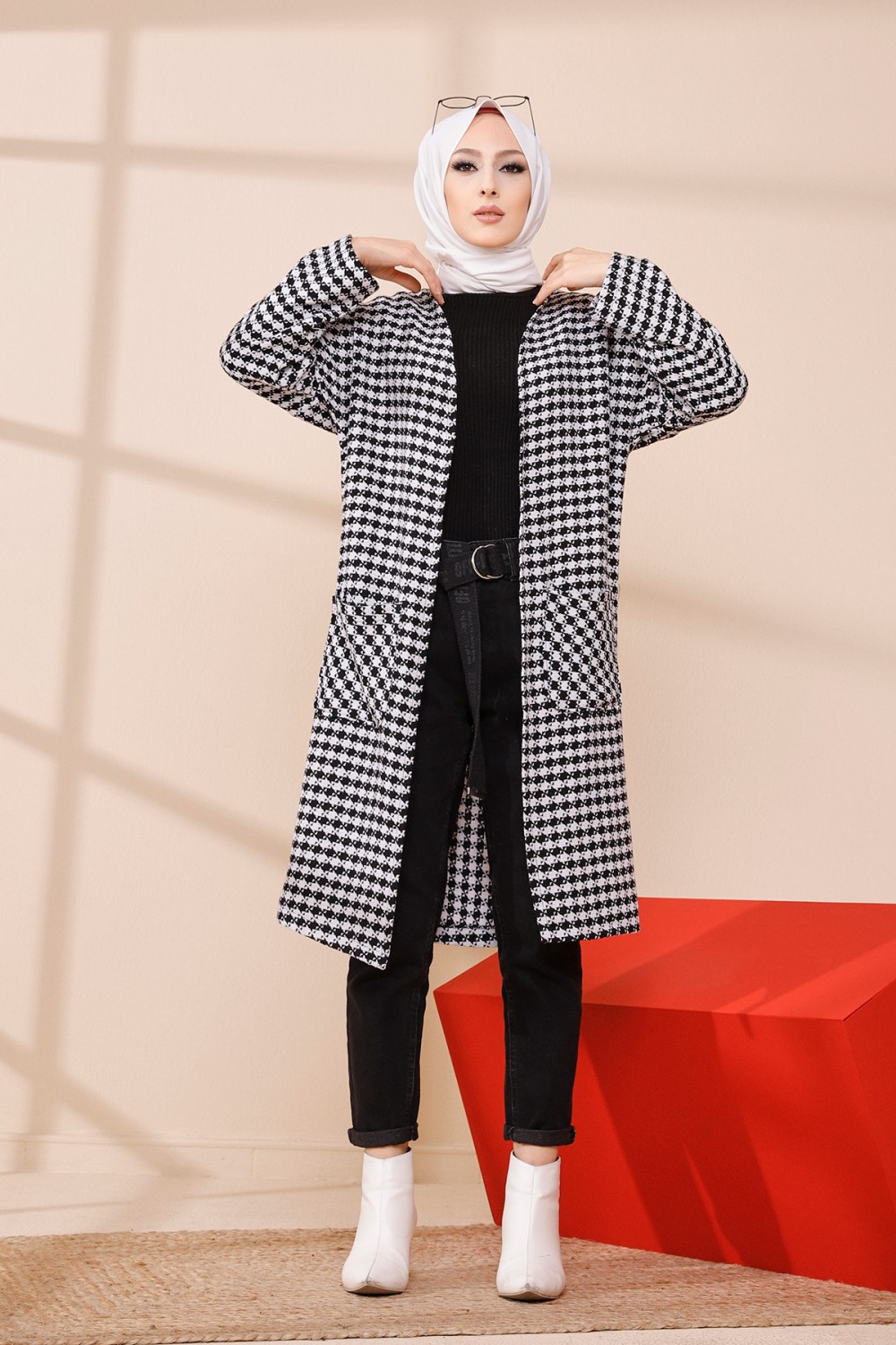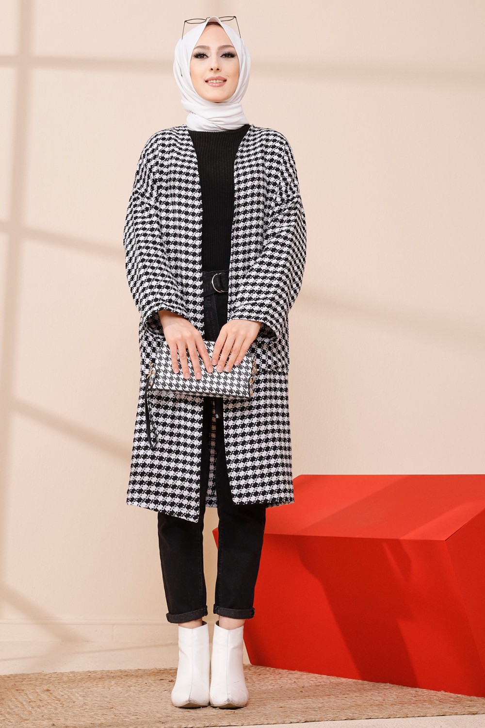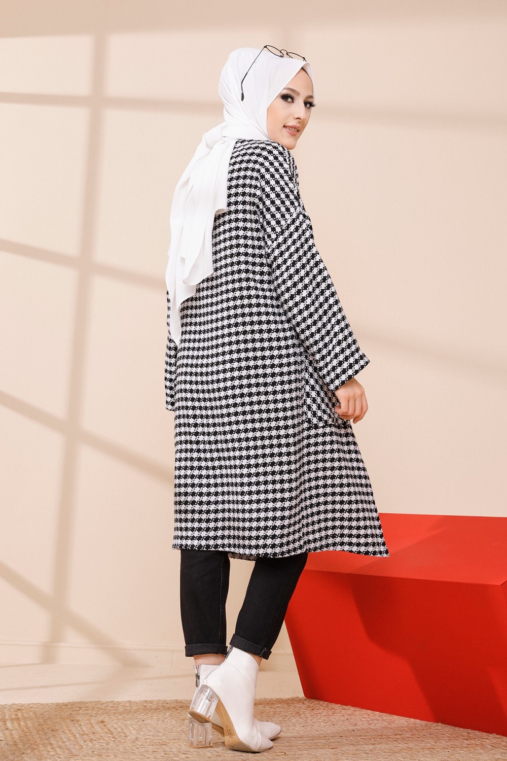 Veste longue (Vêtement Automne-Hiver pour Femme Voilée) - Couleur noir et blanc Vetement & Accessoire