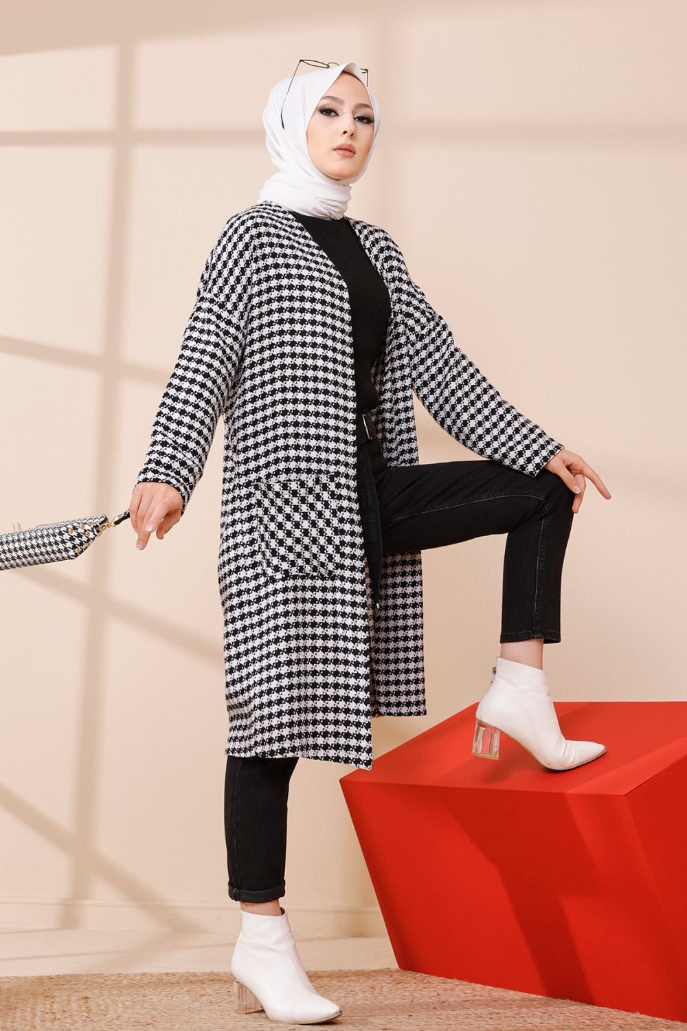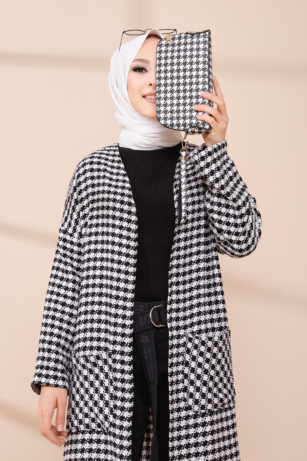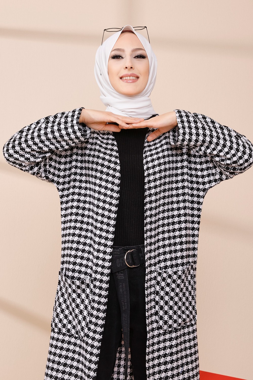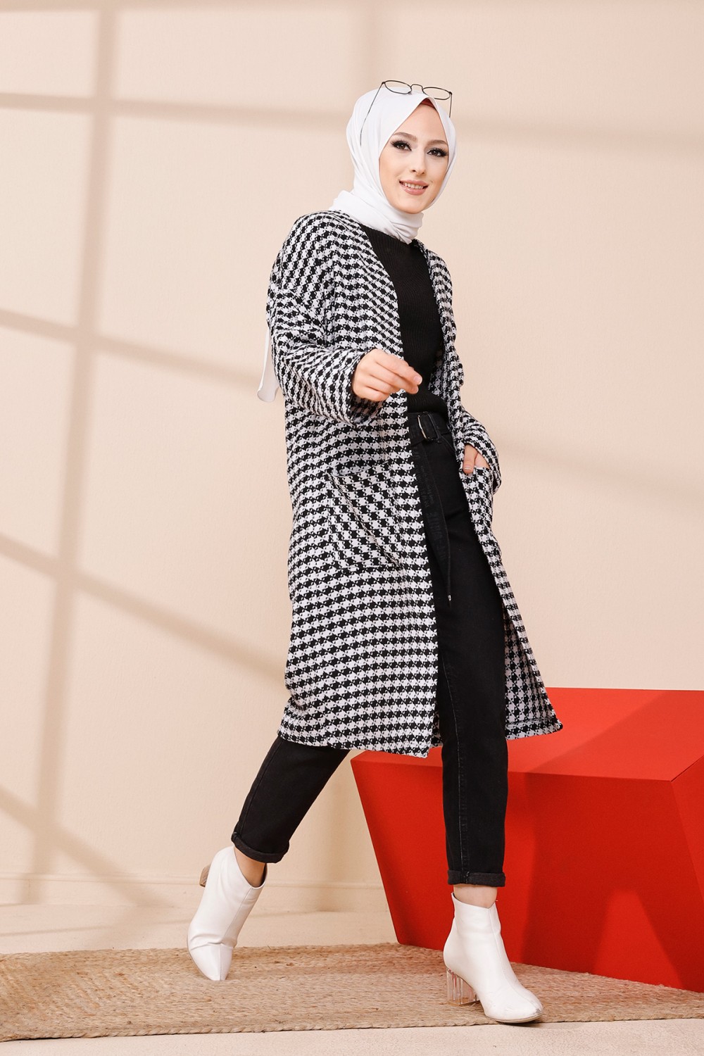 Veste longue (Vêtement Automne-Hiver pour Femme Voilée) - Couleur noir et blanc Vetement & Accessoire