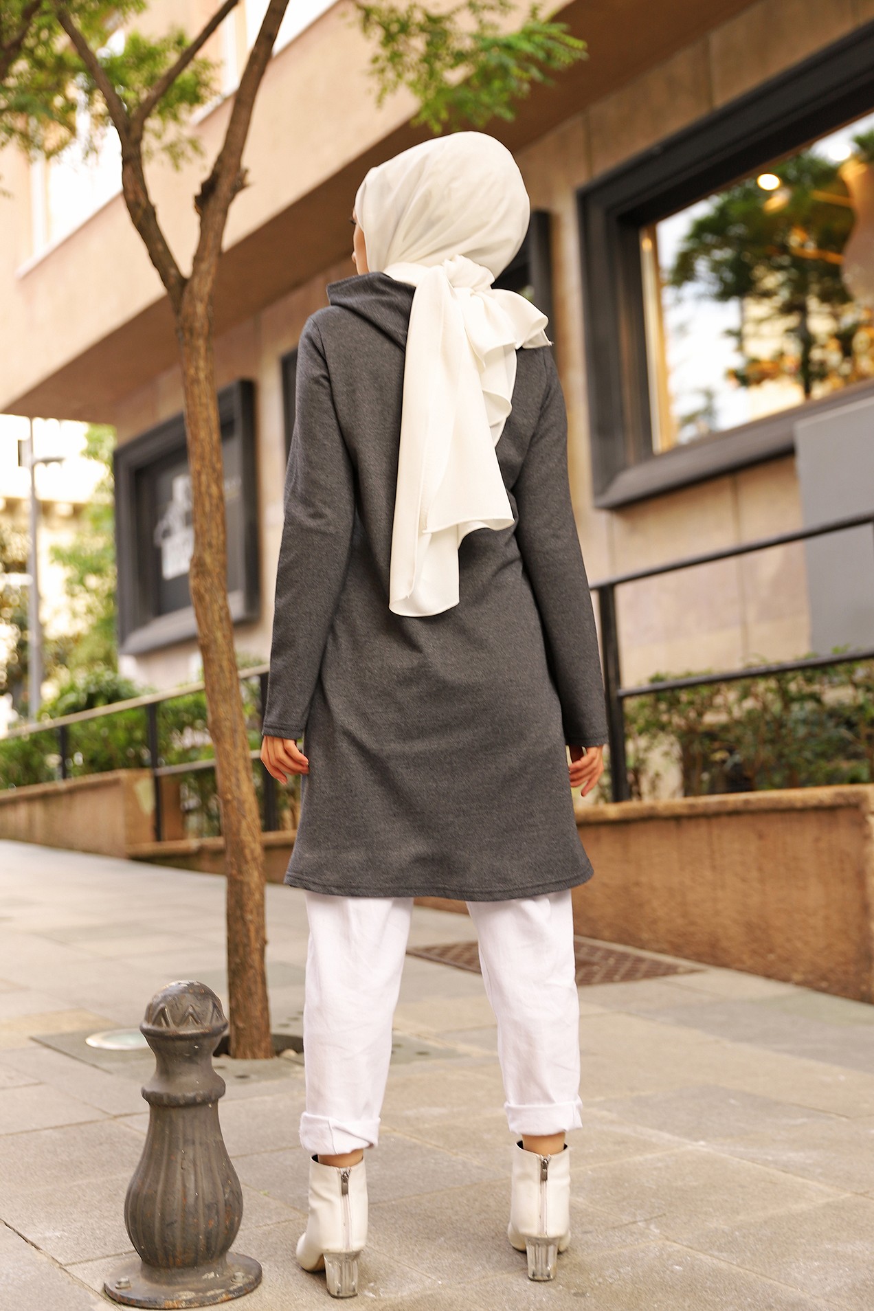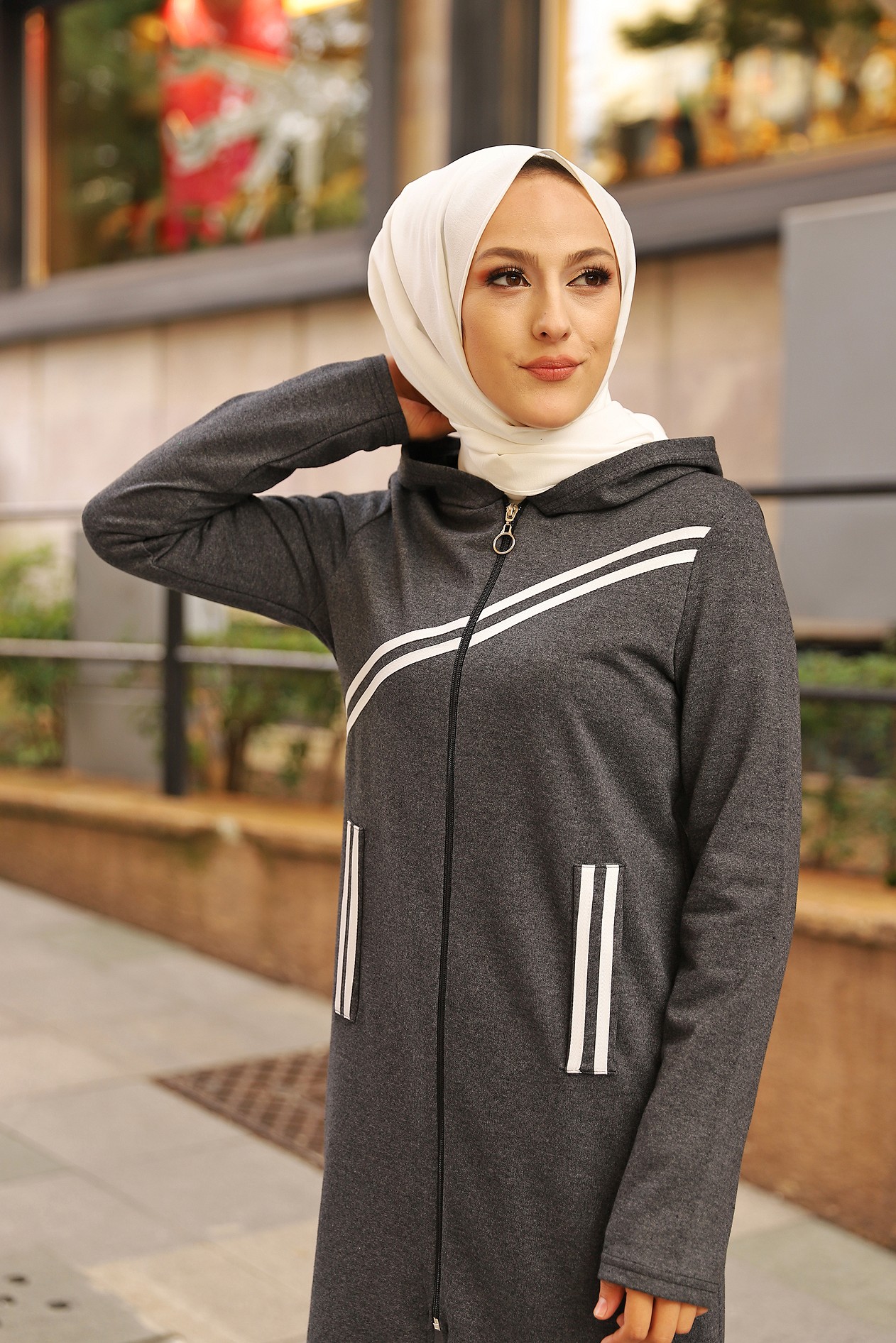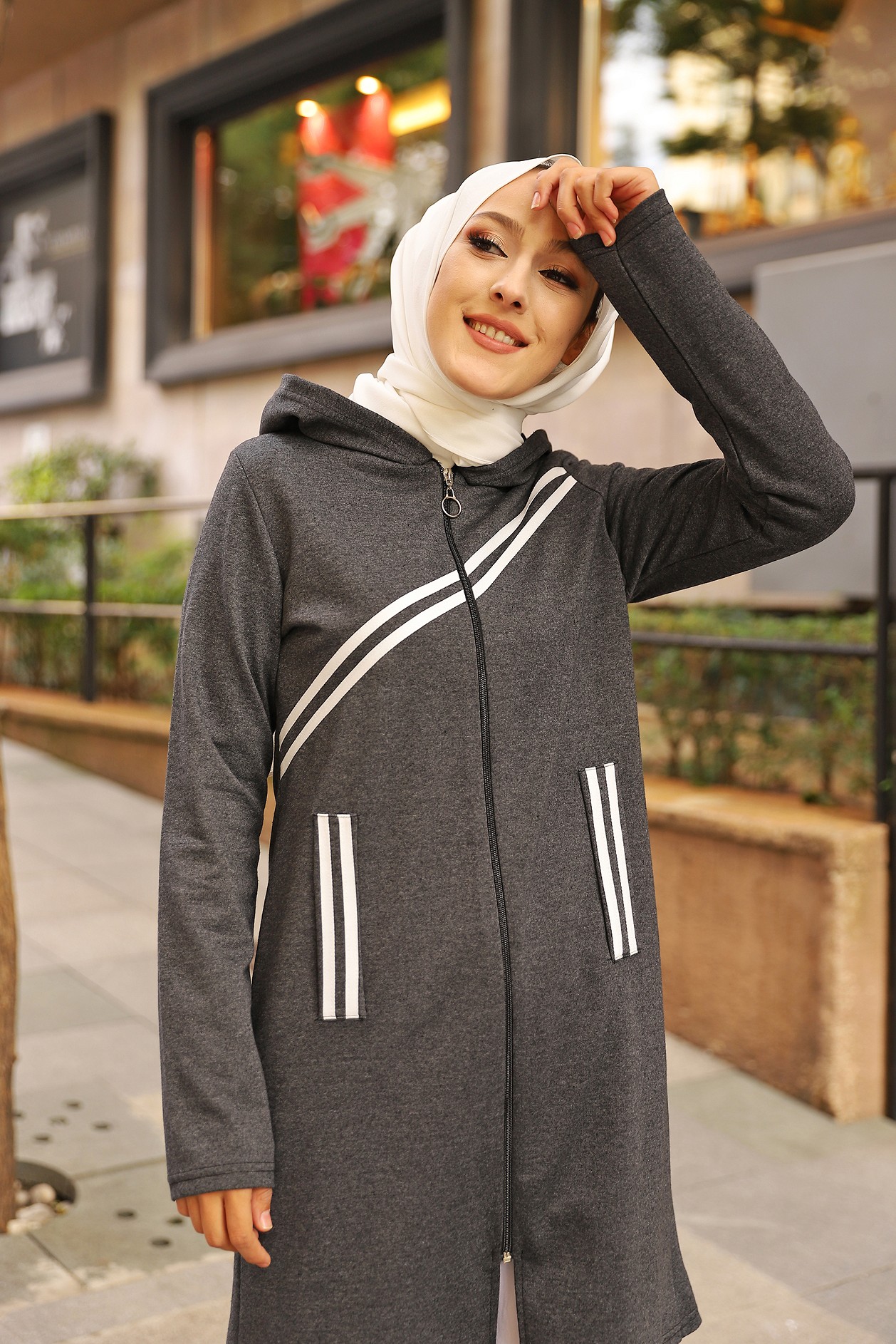 Veste longue à capuche type Sportswear pour femme voilée - Couleur anthracite Vetement & Accessoire
