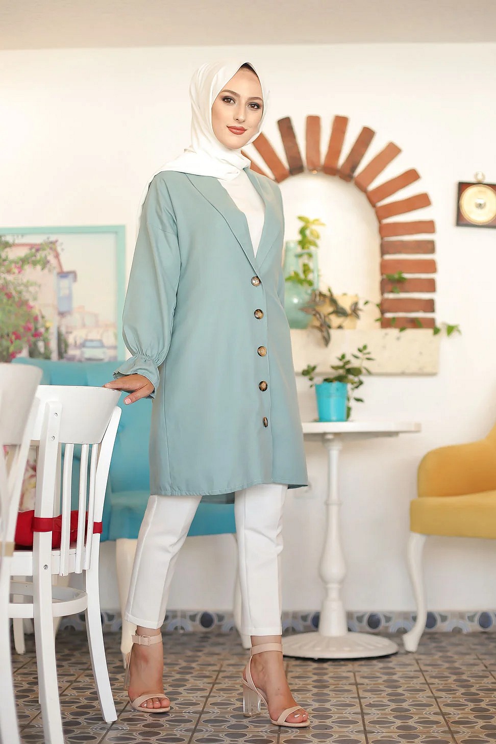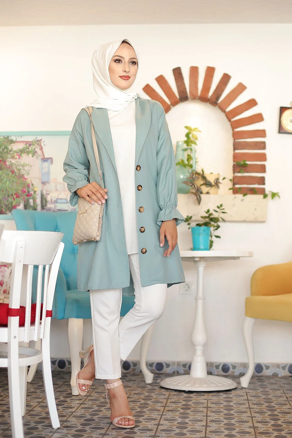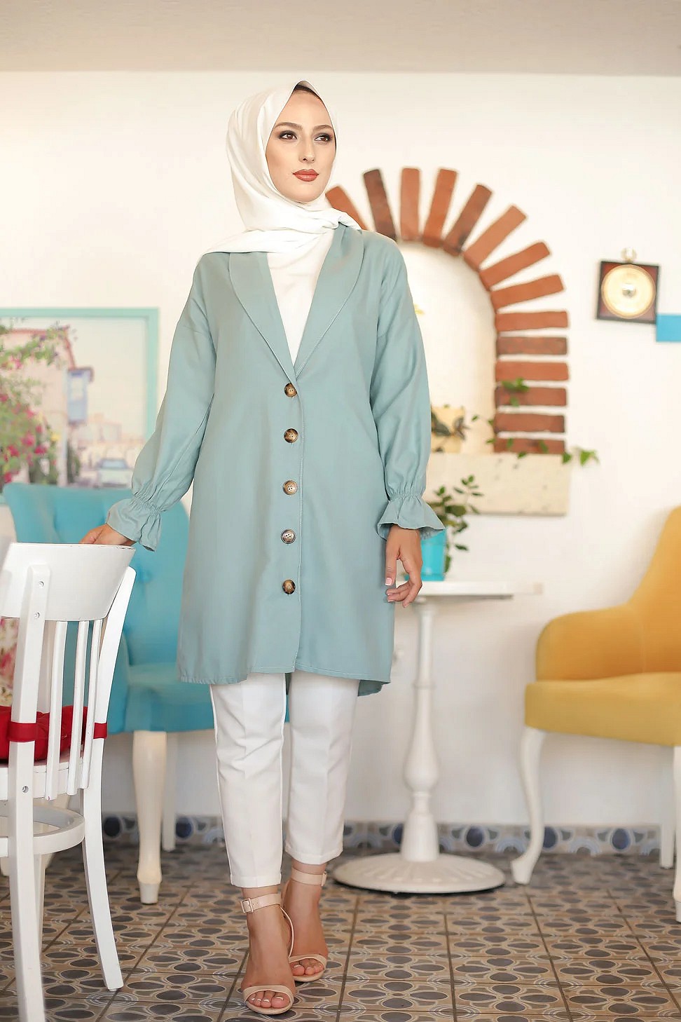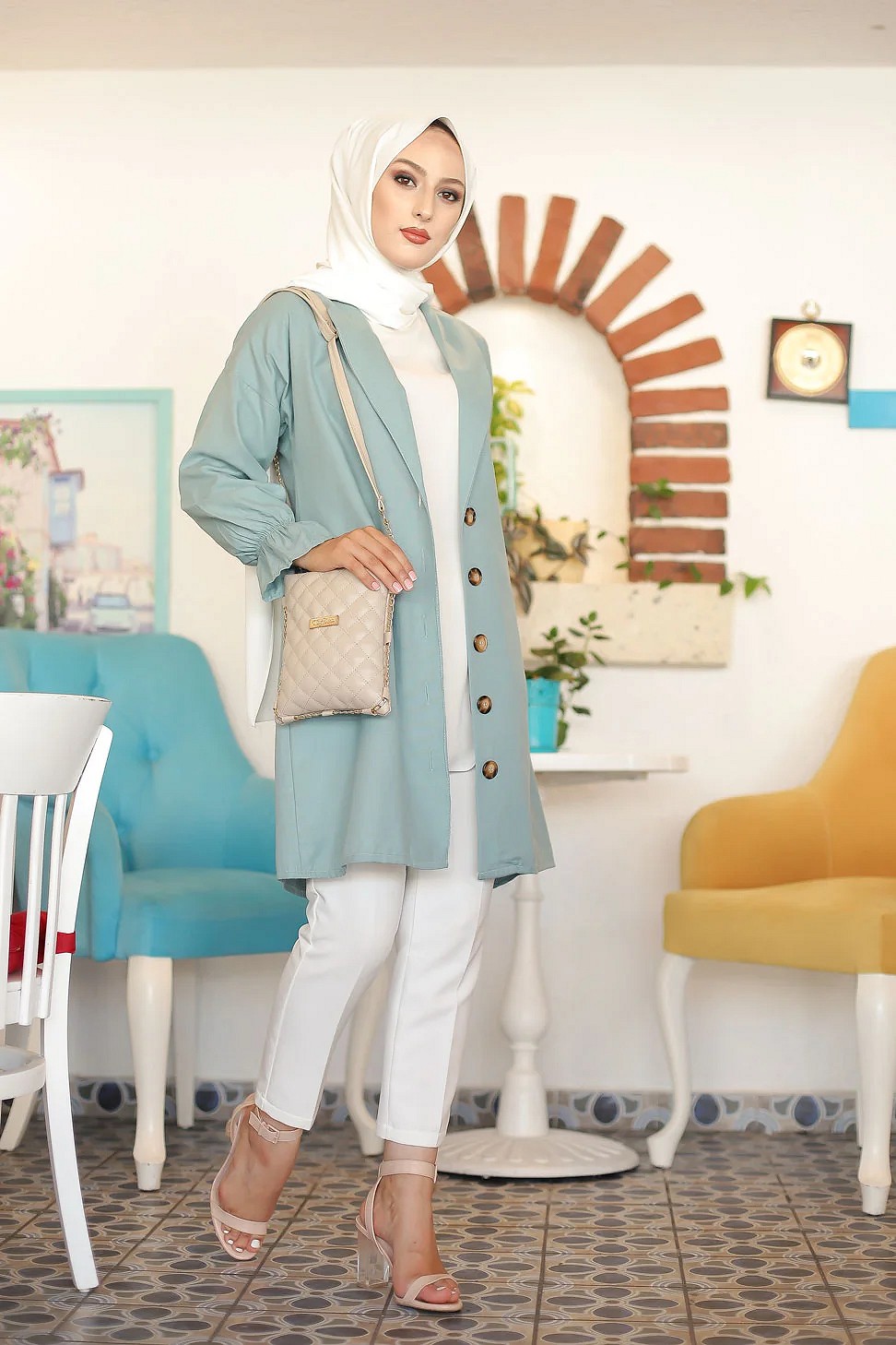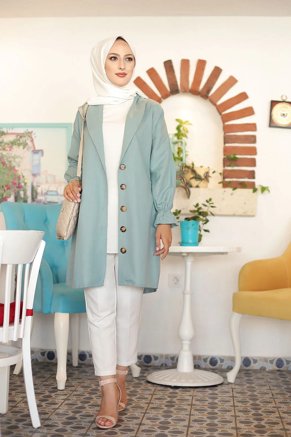 Veste longue classique boutonnee elegante (Tenue Hijab) - Couleur menthe