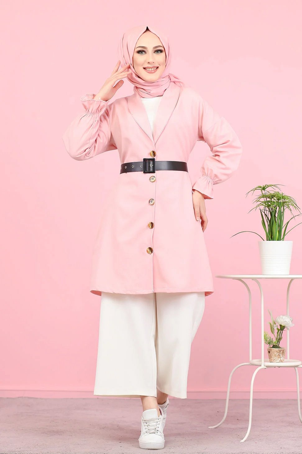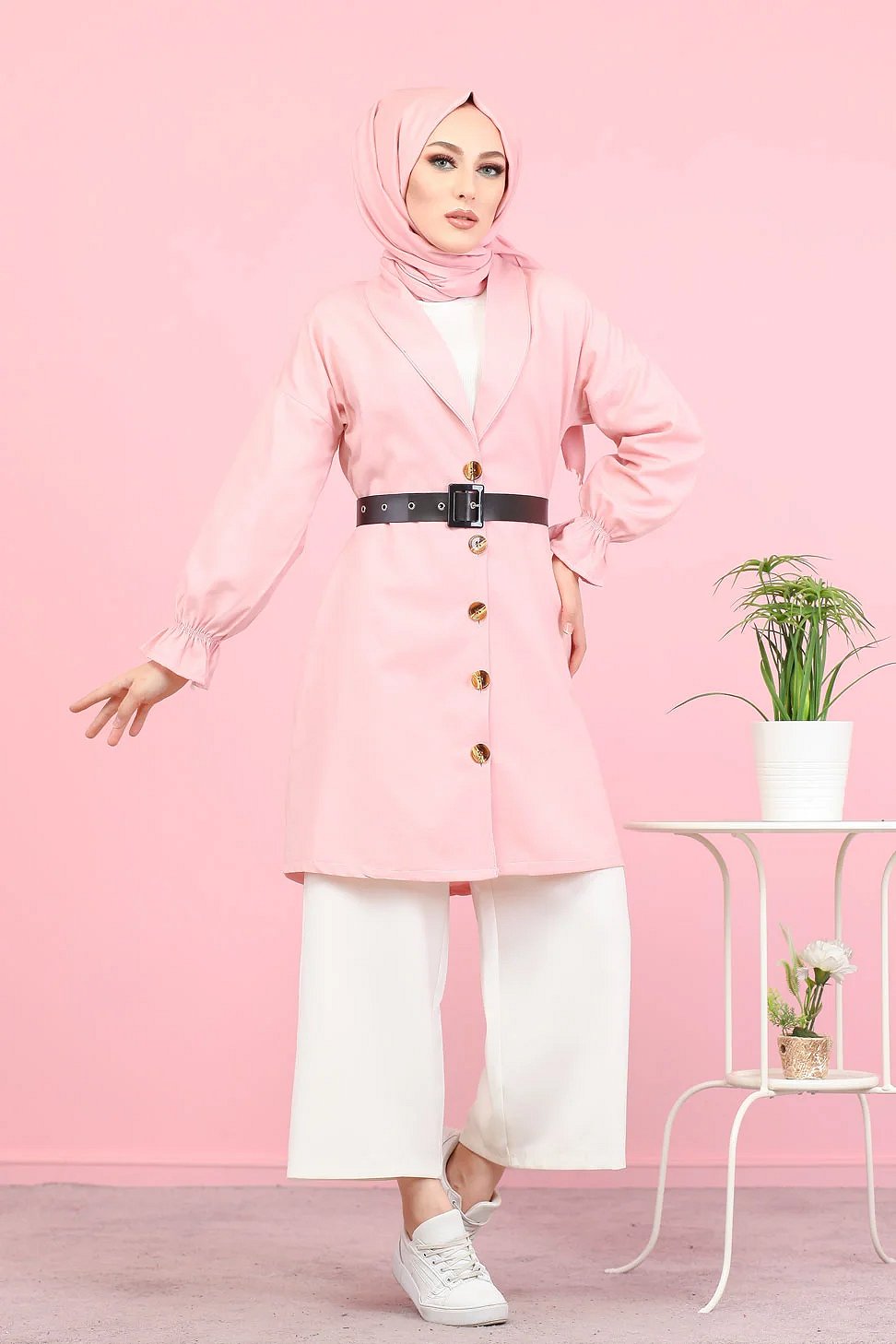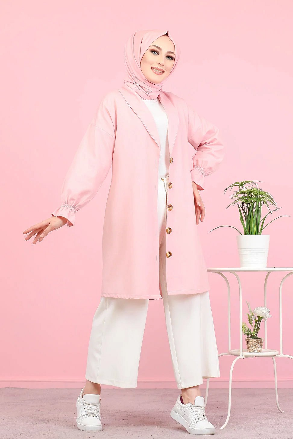 Veste longue classique boutonnee elegante (Vetement Hijab) - Couleur rose