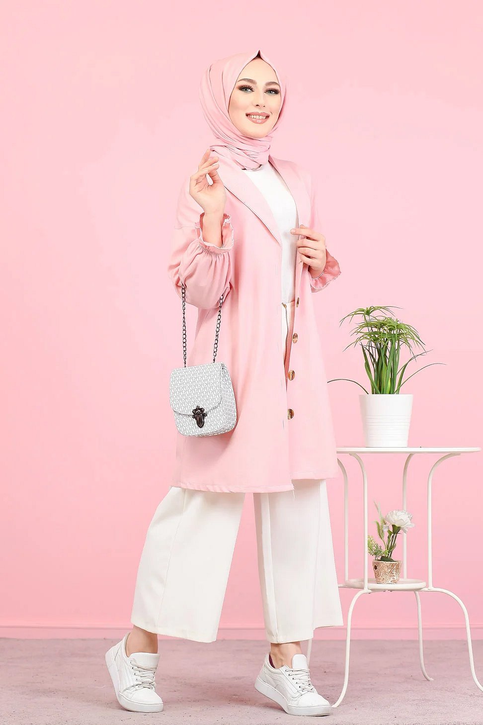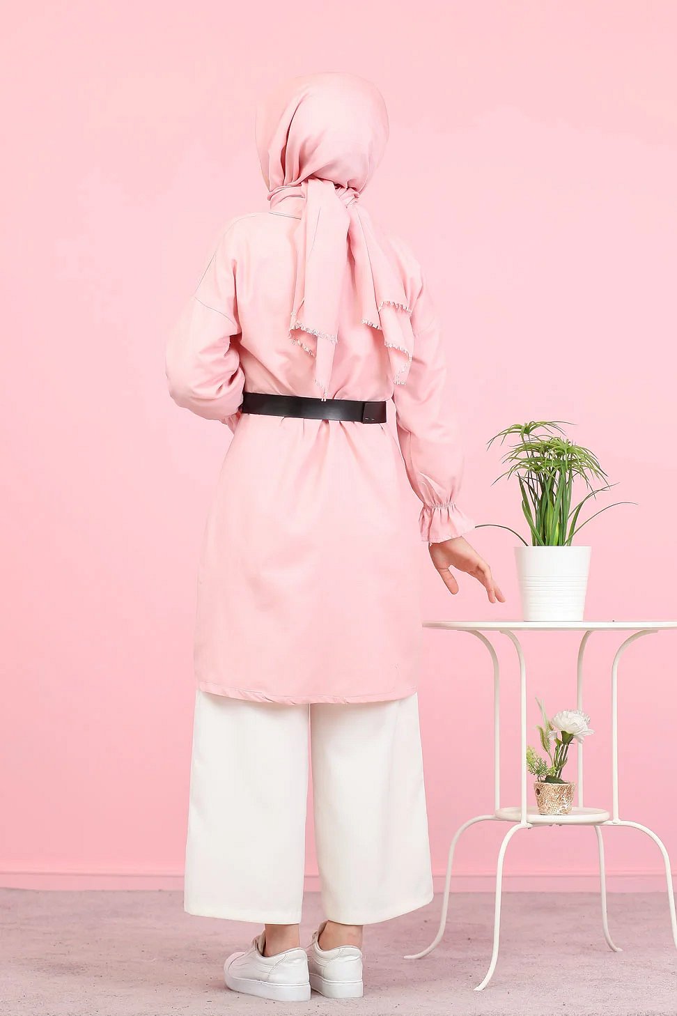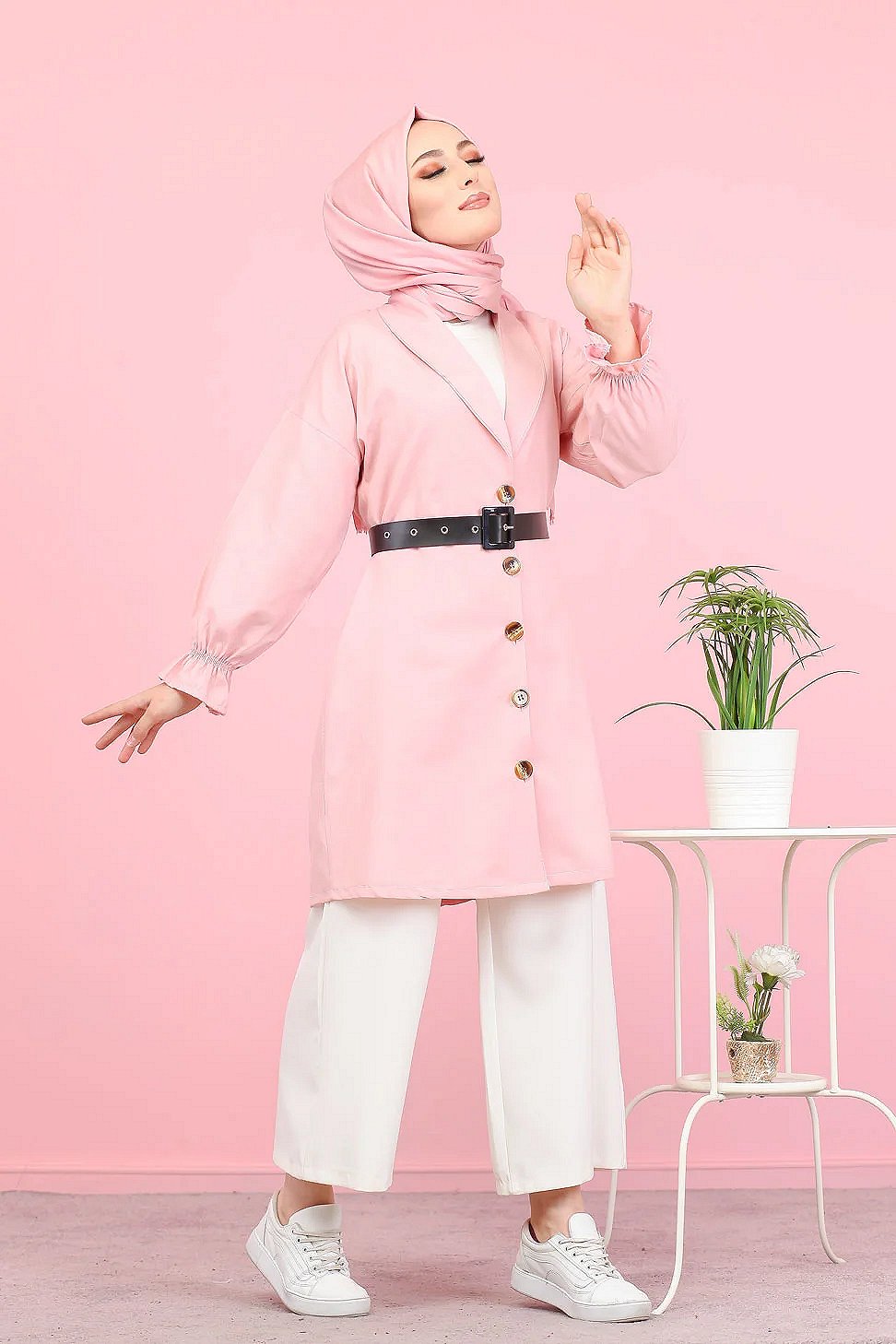 Veste longue classique boutonnee elegante (Vetement Hijab) - Couleur rose