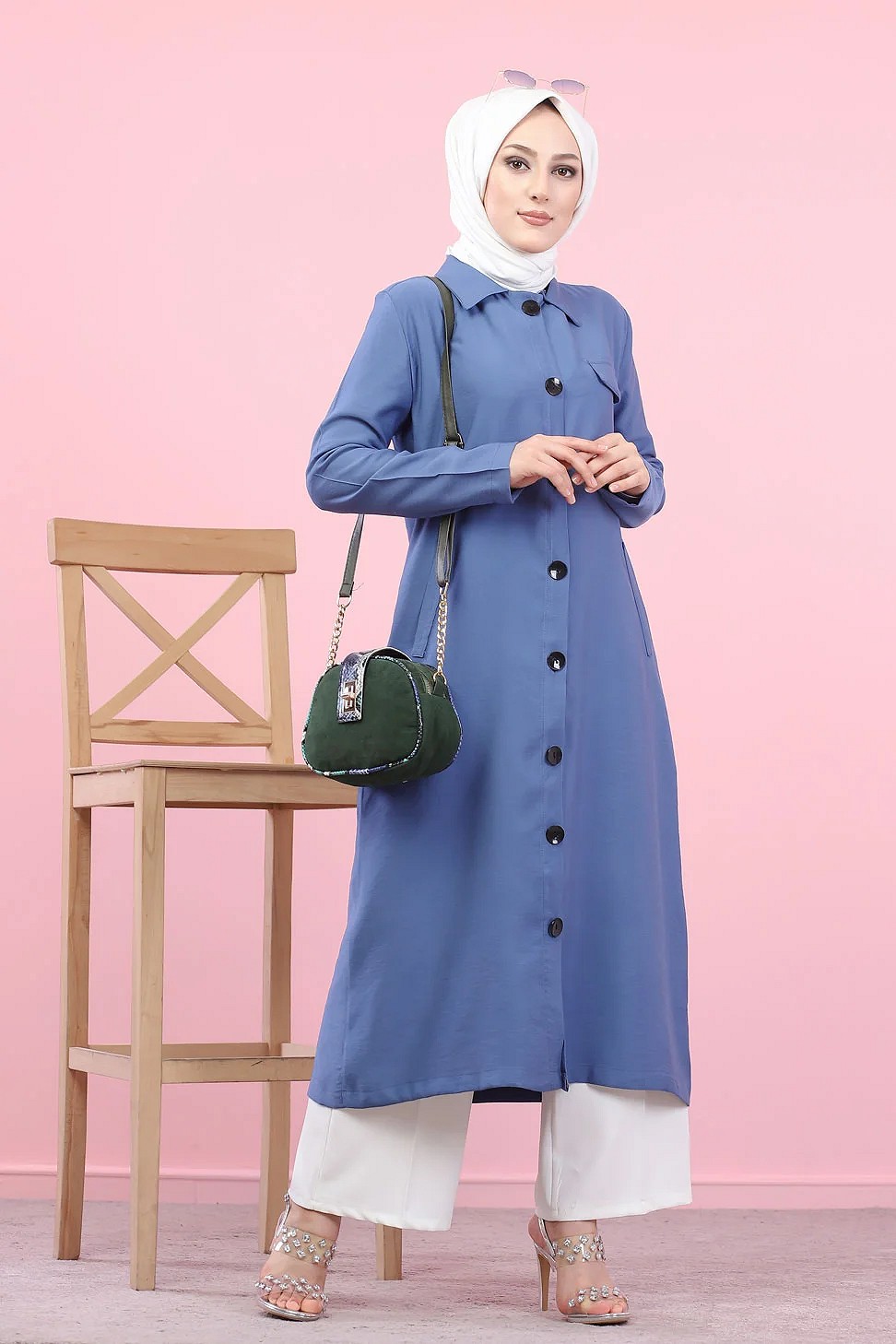 Tunique chemise boutonnée habillée (Vetement pour femme musulmane) - Couleur menthe - REF. 36342 (29.00 €)