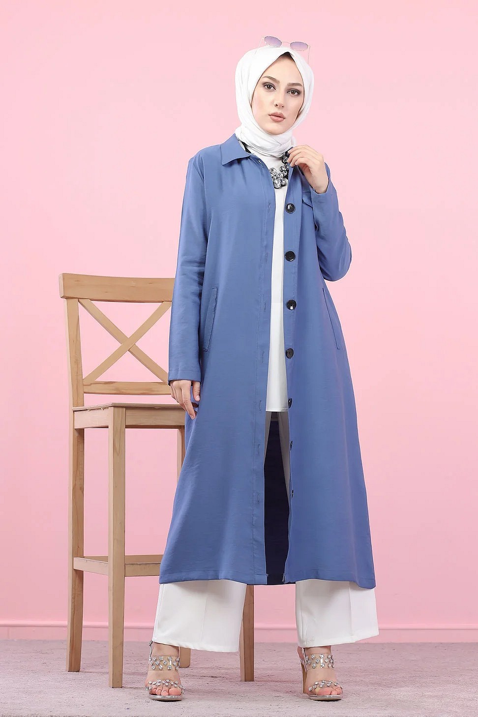 Trench femme - Veste longue (Vetement hijab pour musulmane) - Couleur bleu - REF. 36469 (29.90 €)