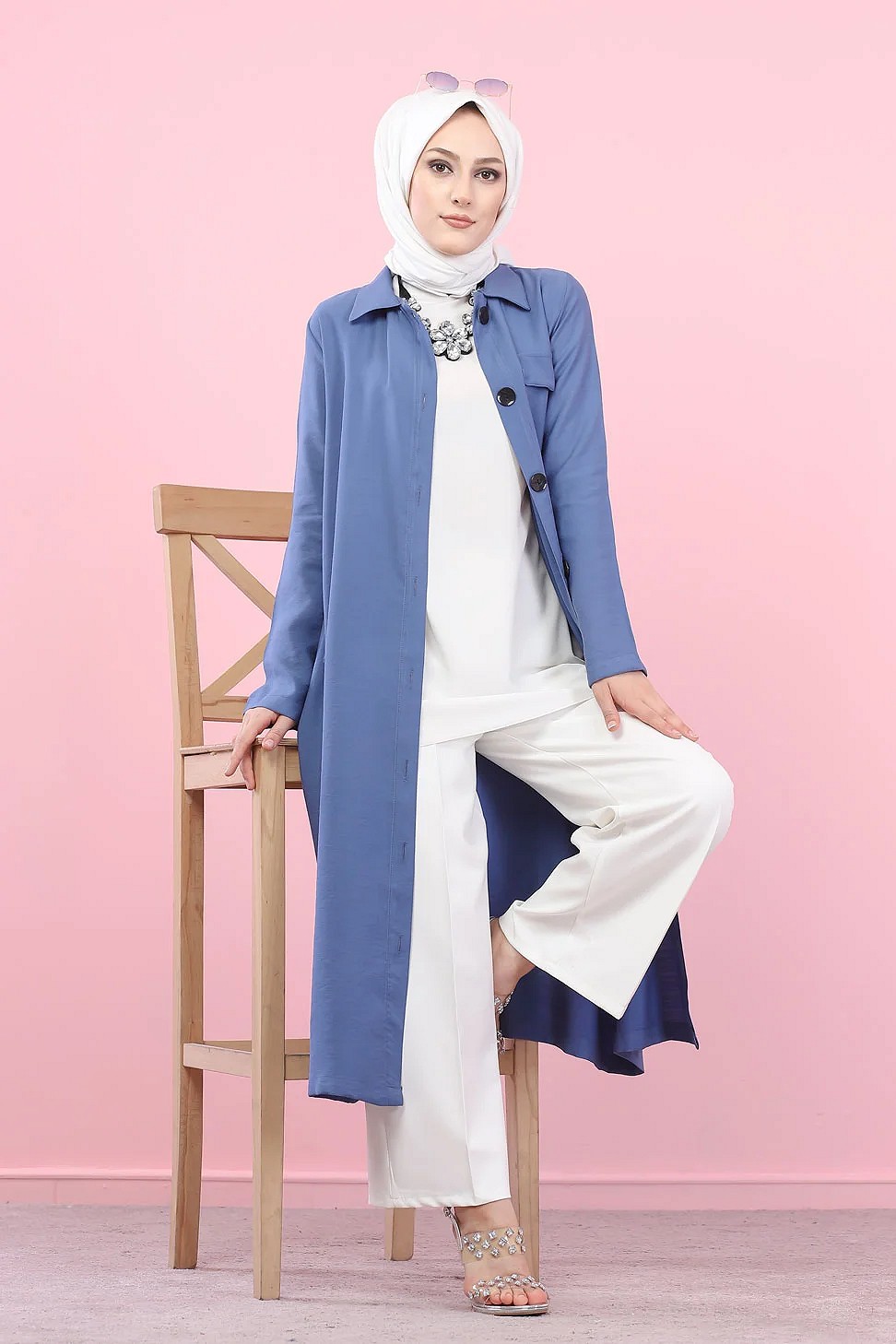 Cette veste longue type chemise surfe sur la tendance Modest Fashion. Ce modèle, qui respecte les codes bien connus de la tenue musulmane sobre et mastoura, se porte aussi bien ouvert que fermé. Parfait pour la mi saison.