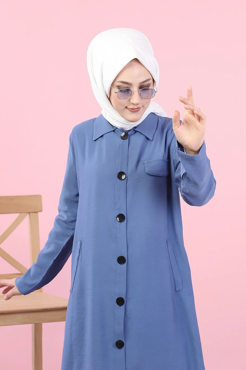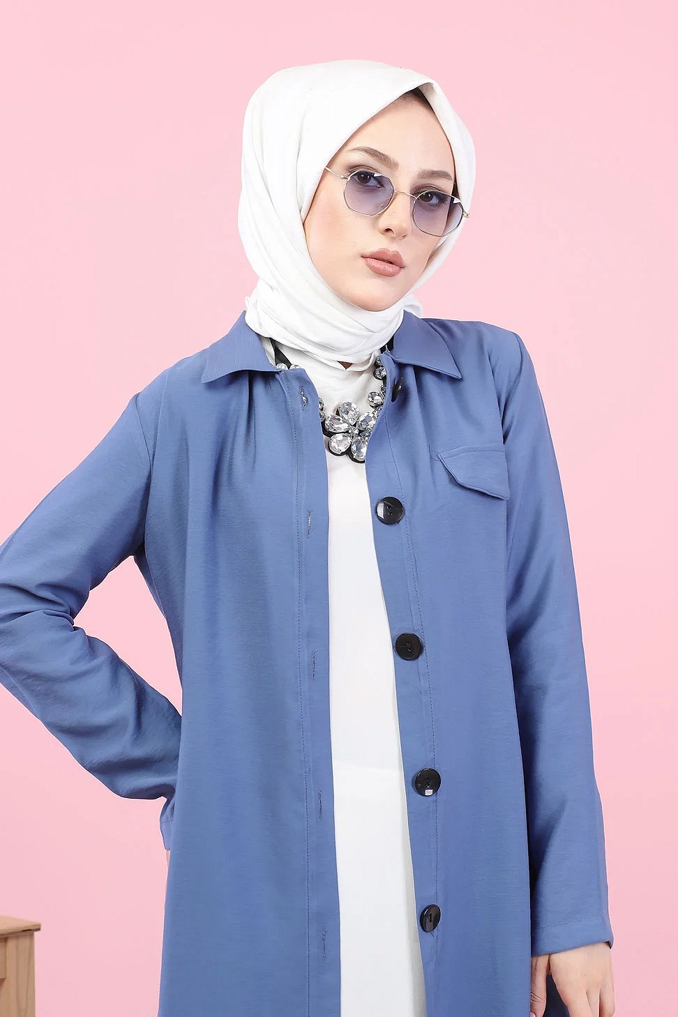 Veste longue pour femme - style chemise (Mode Musulmane) - Couleur bleu indigo