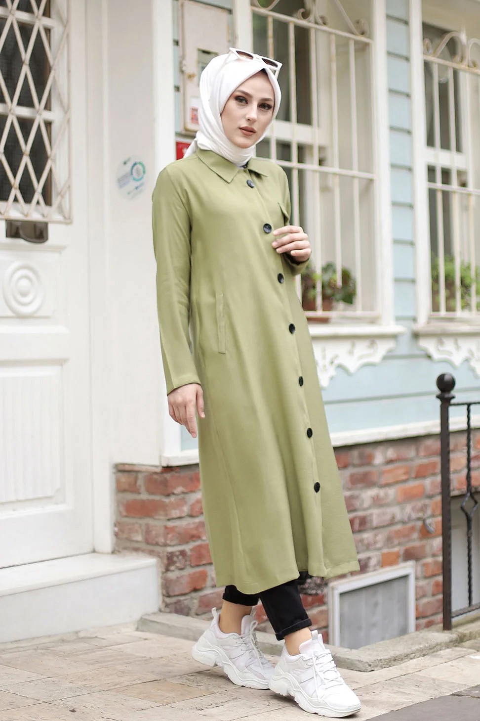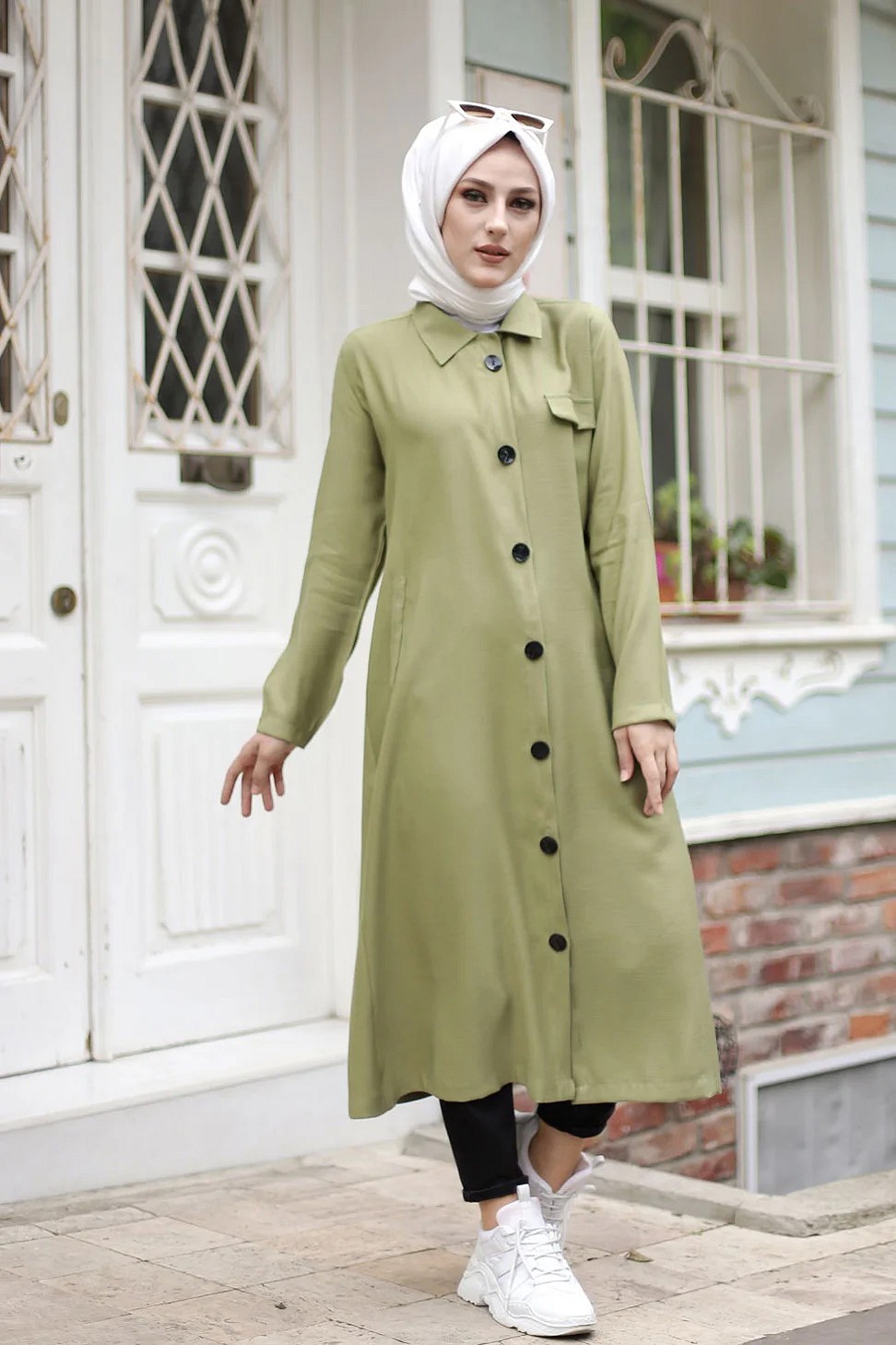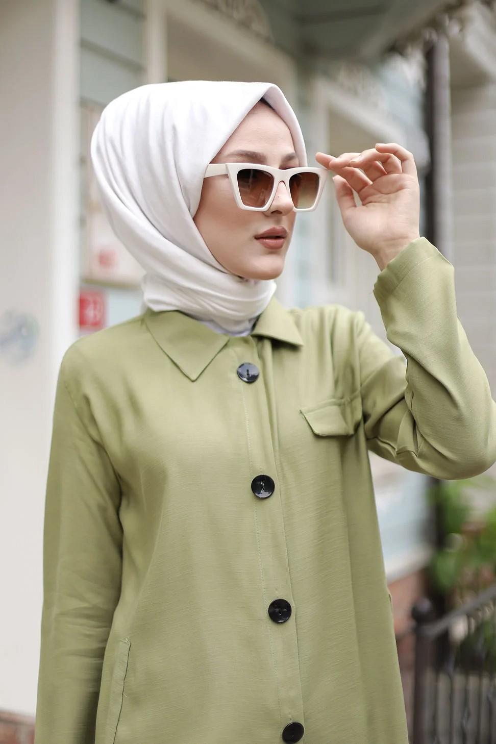 Veste longue pour femme - style chemise (Vetement femme voilee) - Couleur vert clair