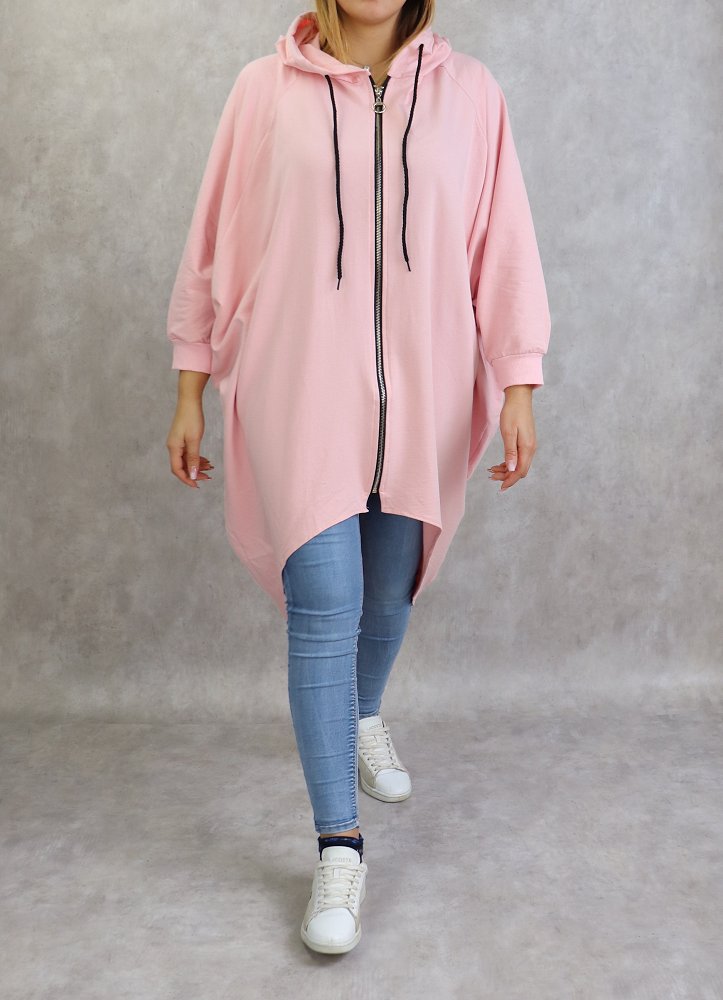 Cardigan long pour femme (Robe zippée à capuche style Sportswear pour femme voilée) - Couleur noir et rose - REF. 33217 (29.90 €)