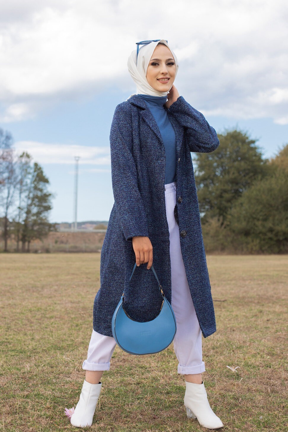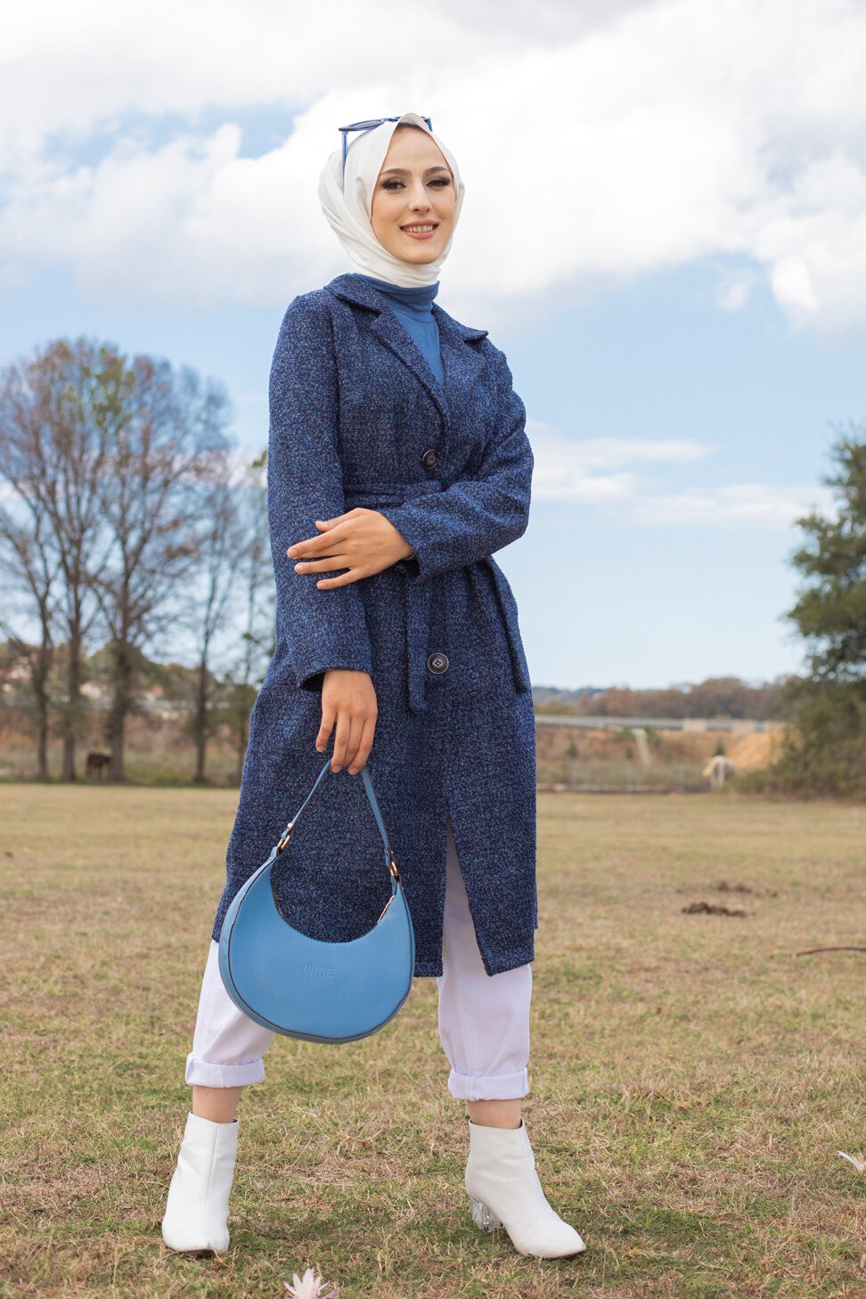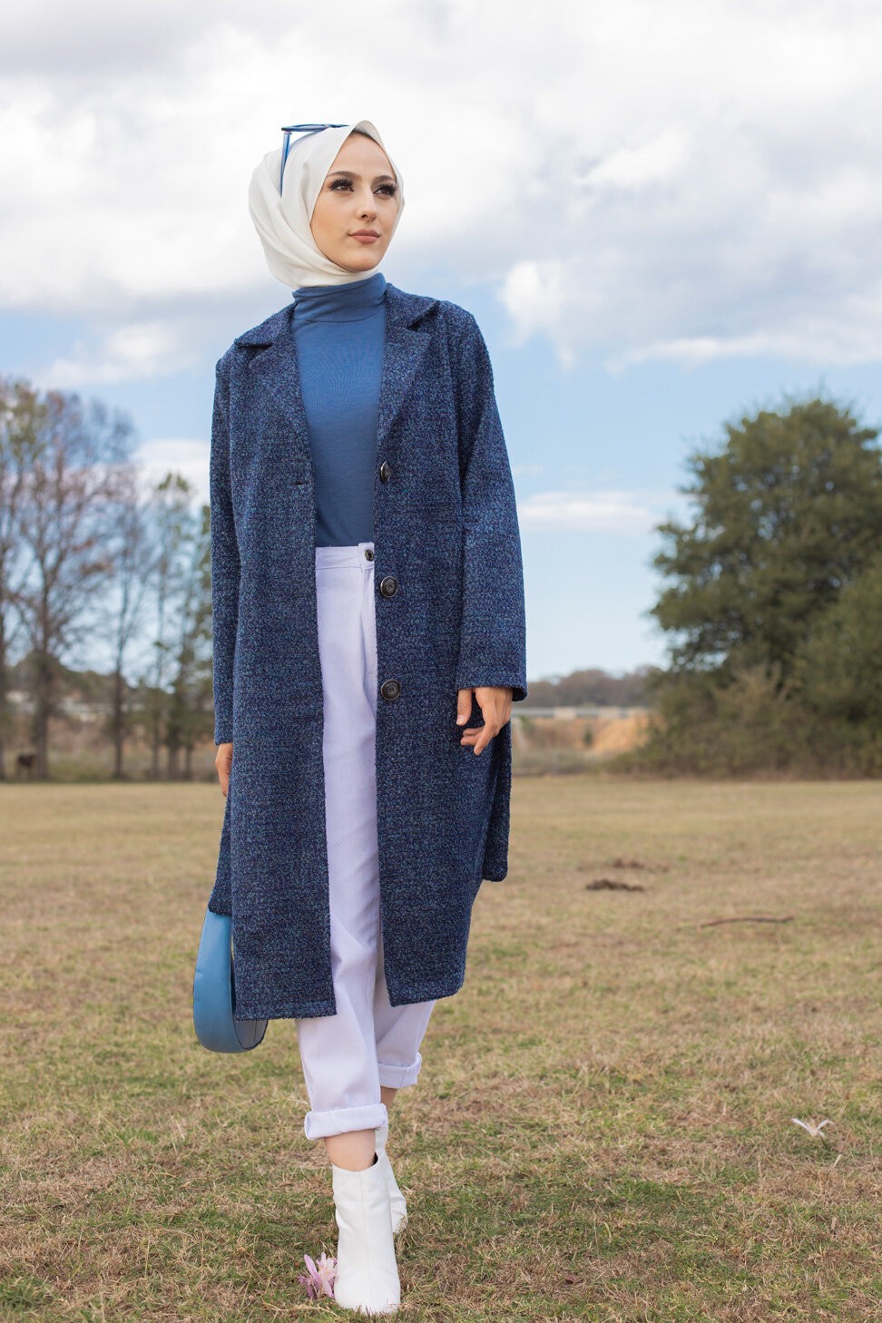Veste longue pour femme - style chemise (Mode Musulmane) - Couleur bleu indigo - REF. 32898 (29.90 €)