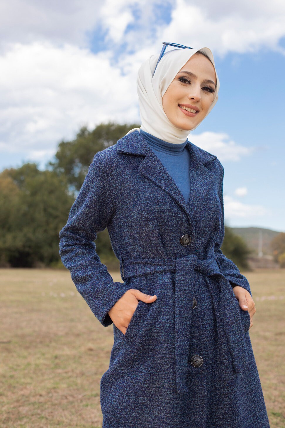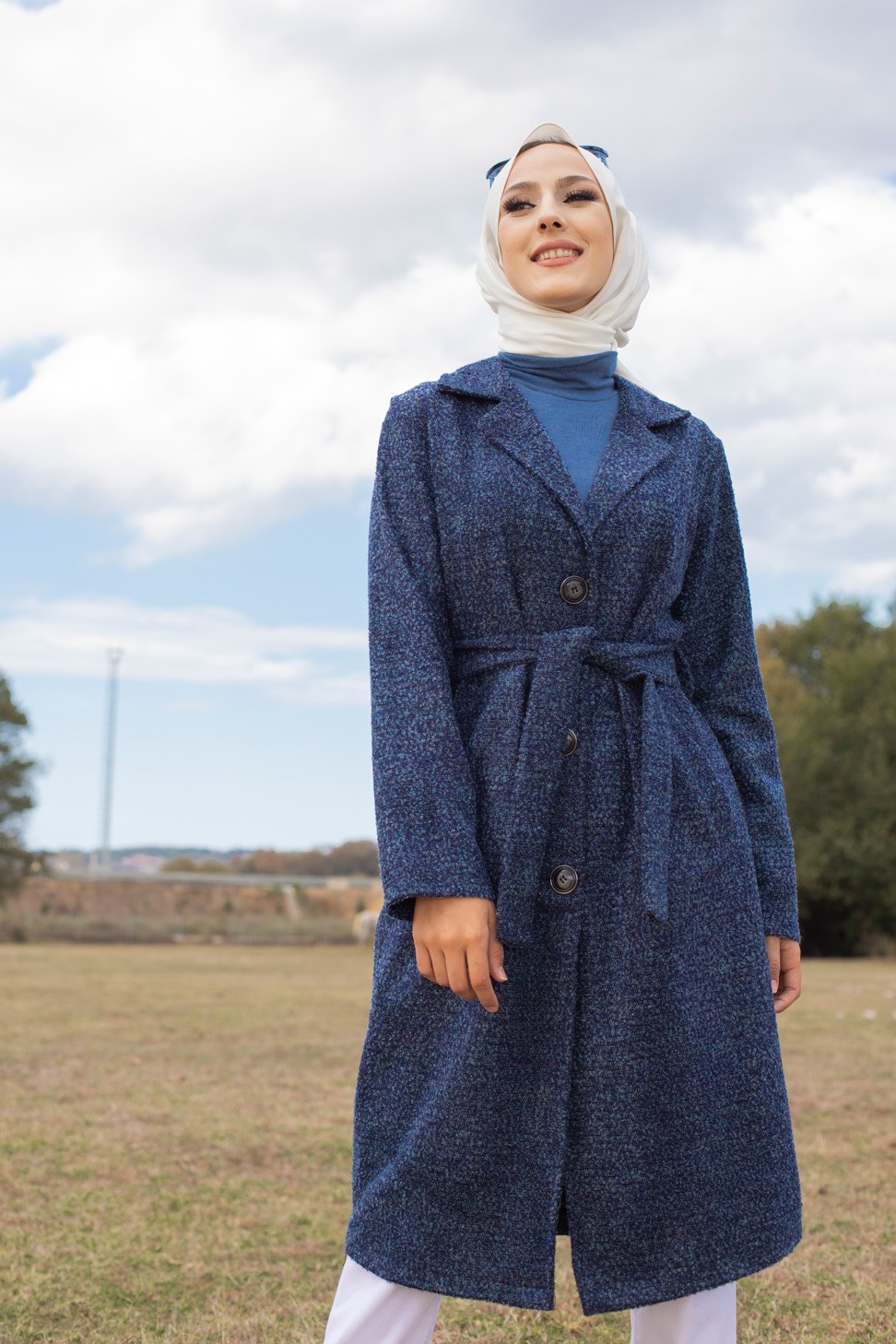 Veste Manteau femme avec ceinture intégrée (Tunique Automne Hiver - Boutique Vêtement Hijab Turque en ligne) - Couleur noir et kaki - REF. 35328 (19.90 €)