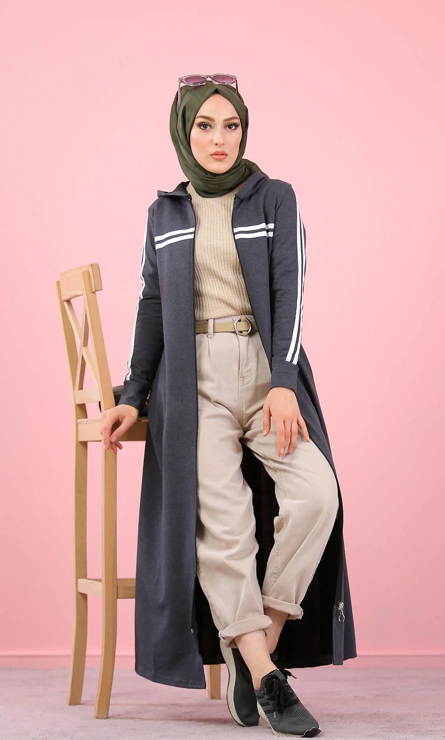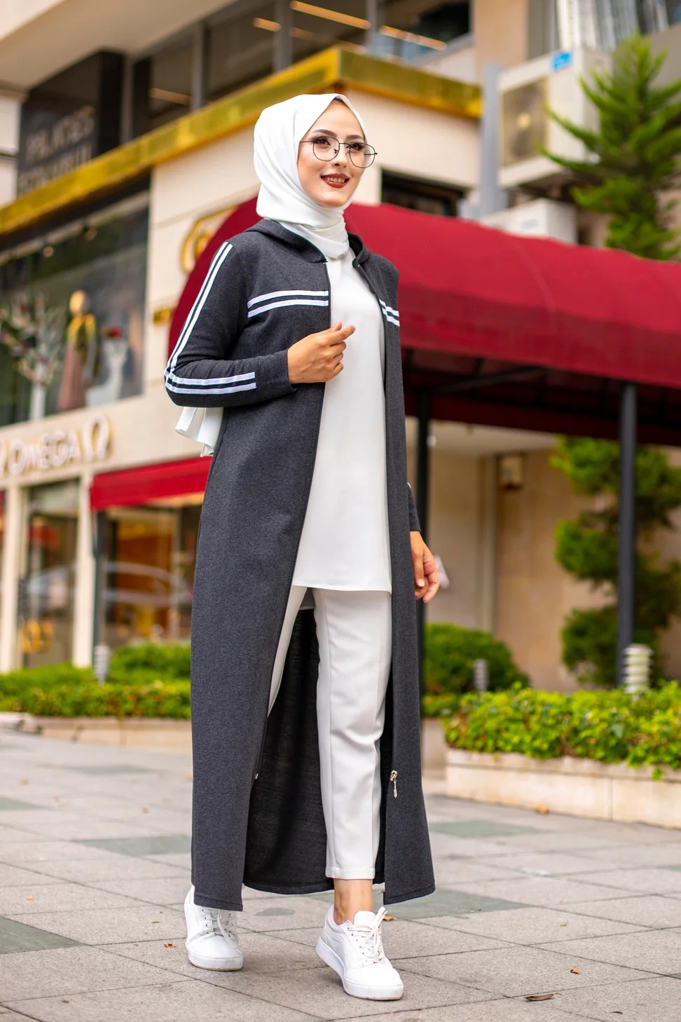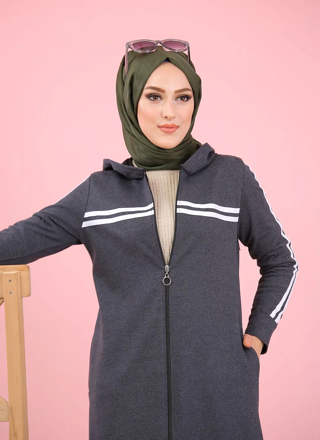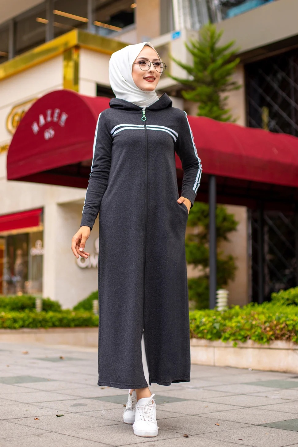 Veste longue zippée style sportswear (Robe Sport pour femme voilée) - Couleur gris foncé (Anthracite) Vetement & Accessoire