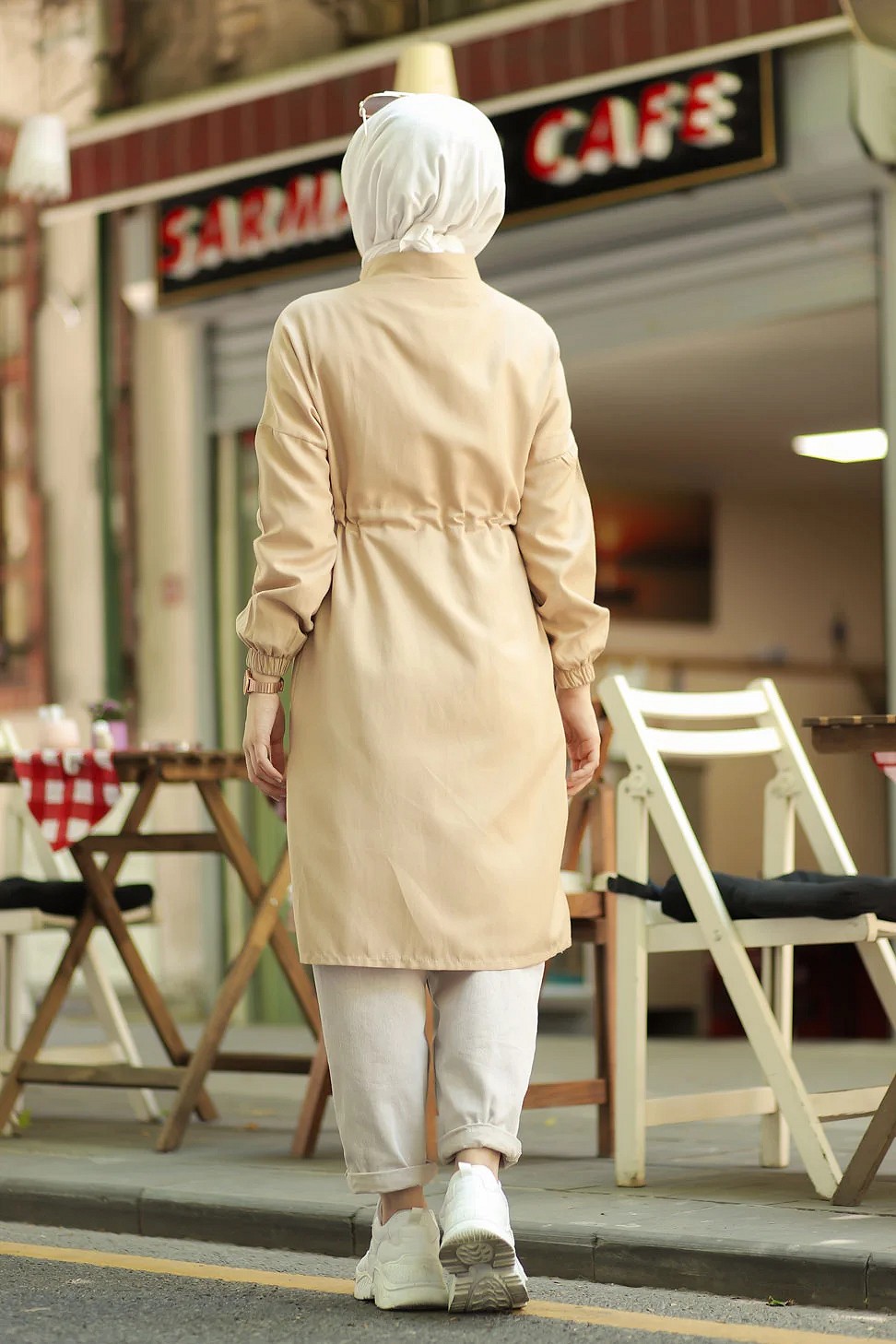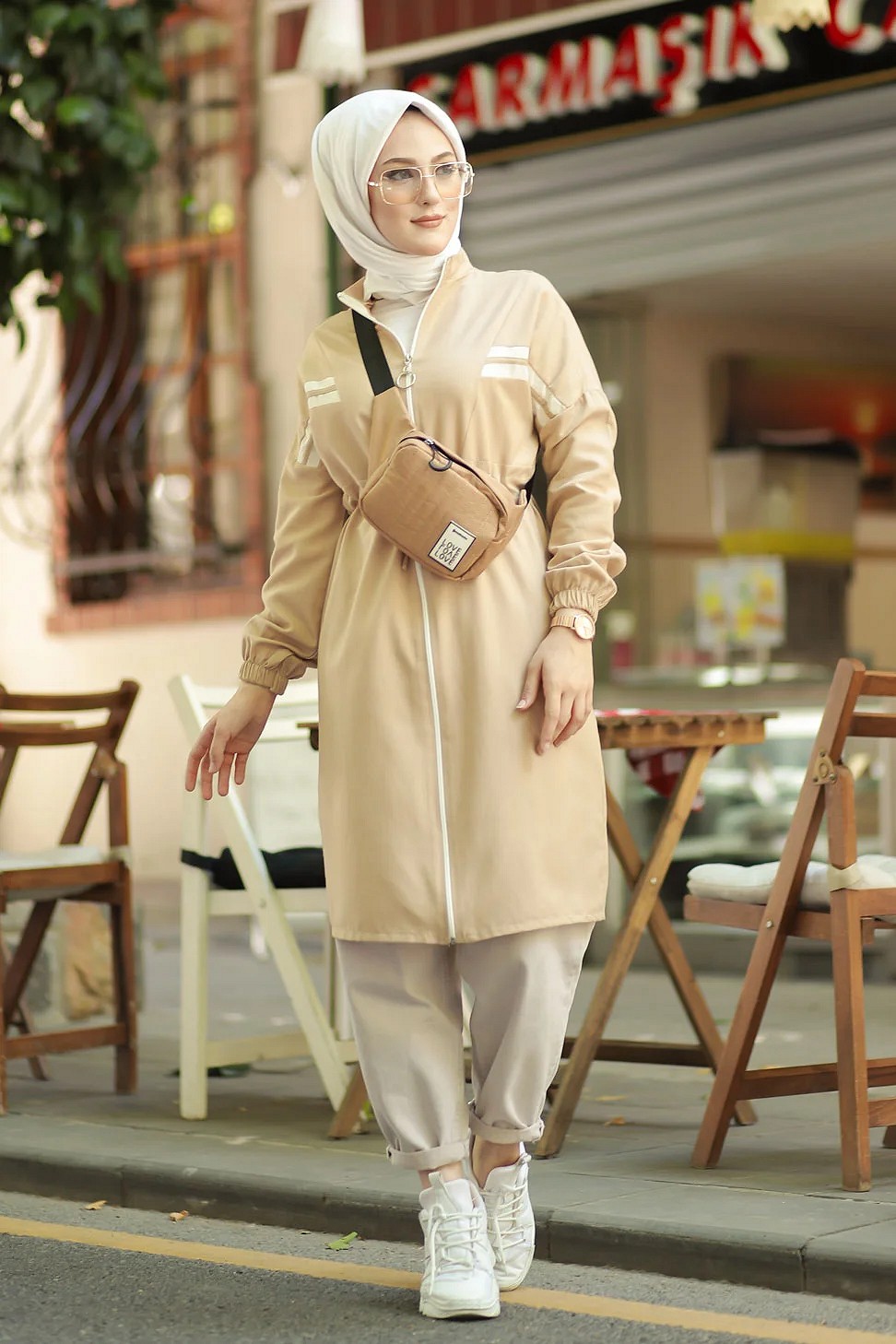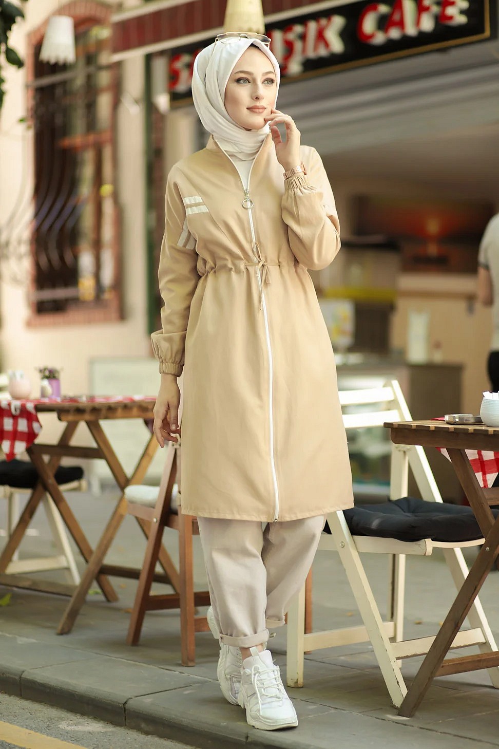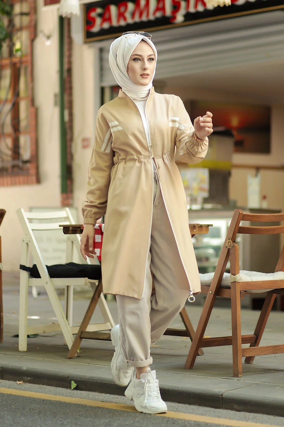 Veste moderne style decontracte avec fermeture zip (Vetement femme voilee) - Couleur beige
