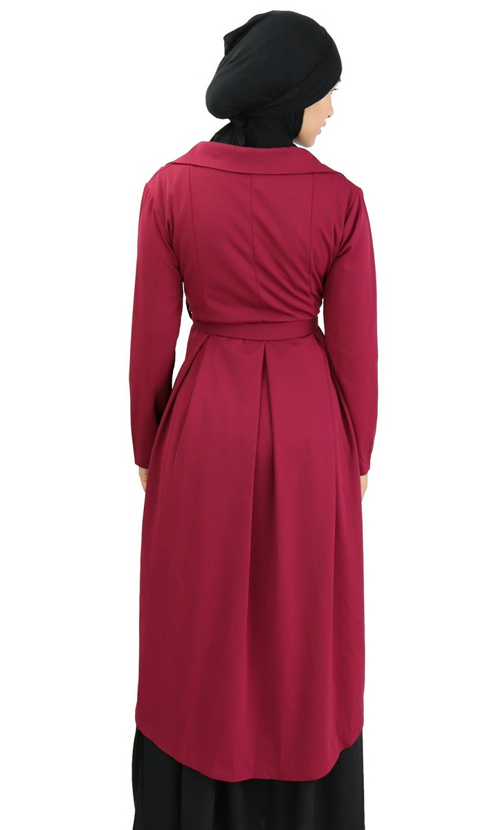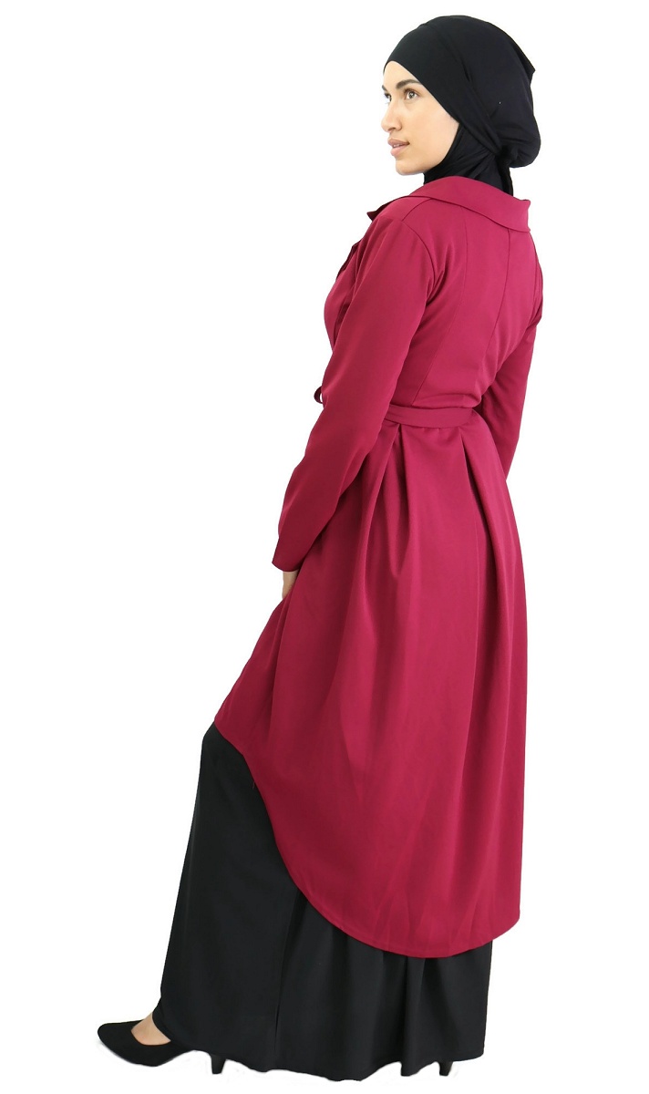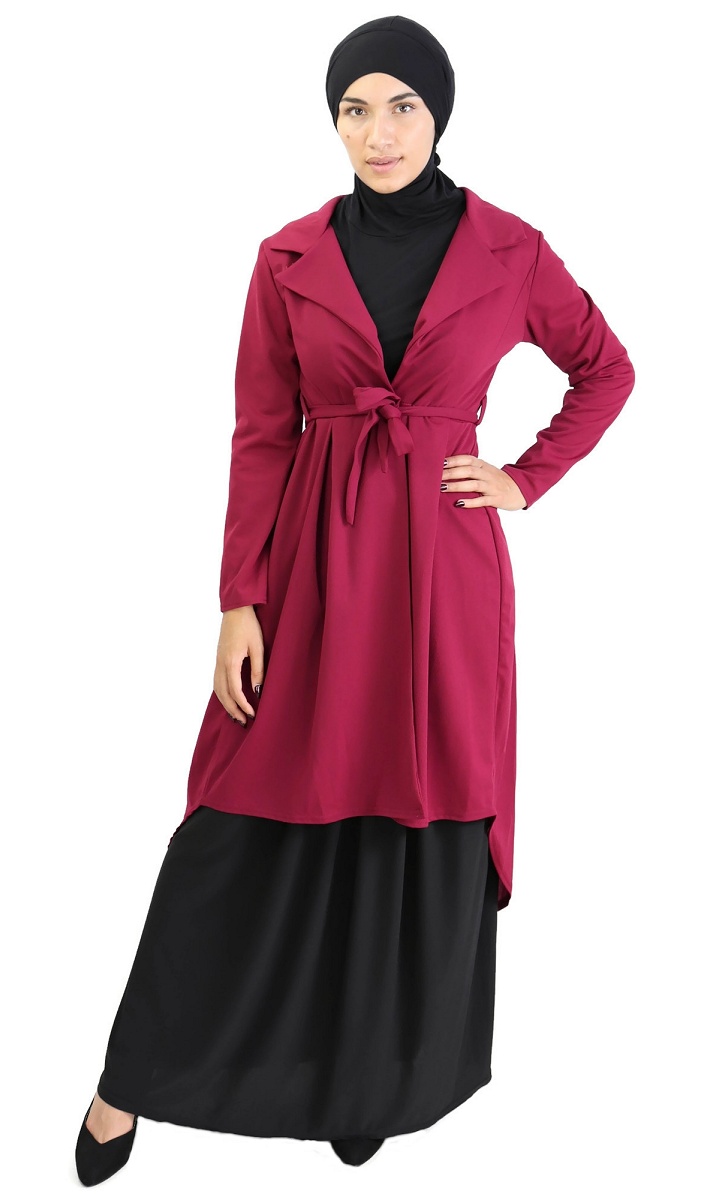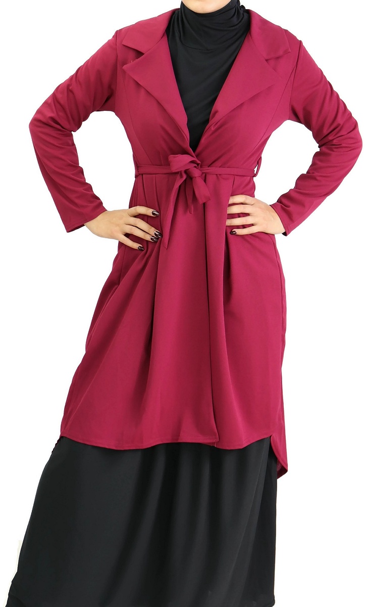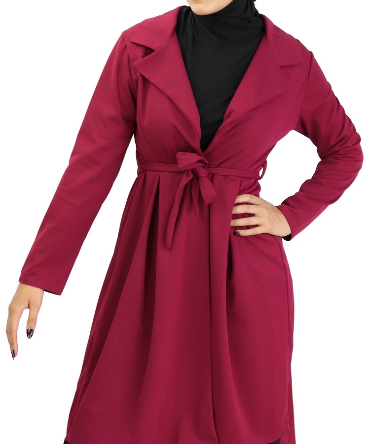 Veste zippée légère mi longue (Vetement ample pour femme voilée) - Couleur rouge bordeaux - REF. 33260 (26.00 €)