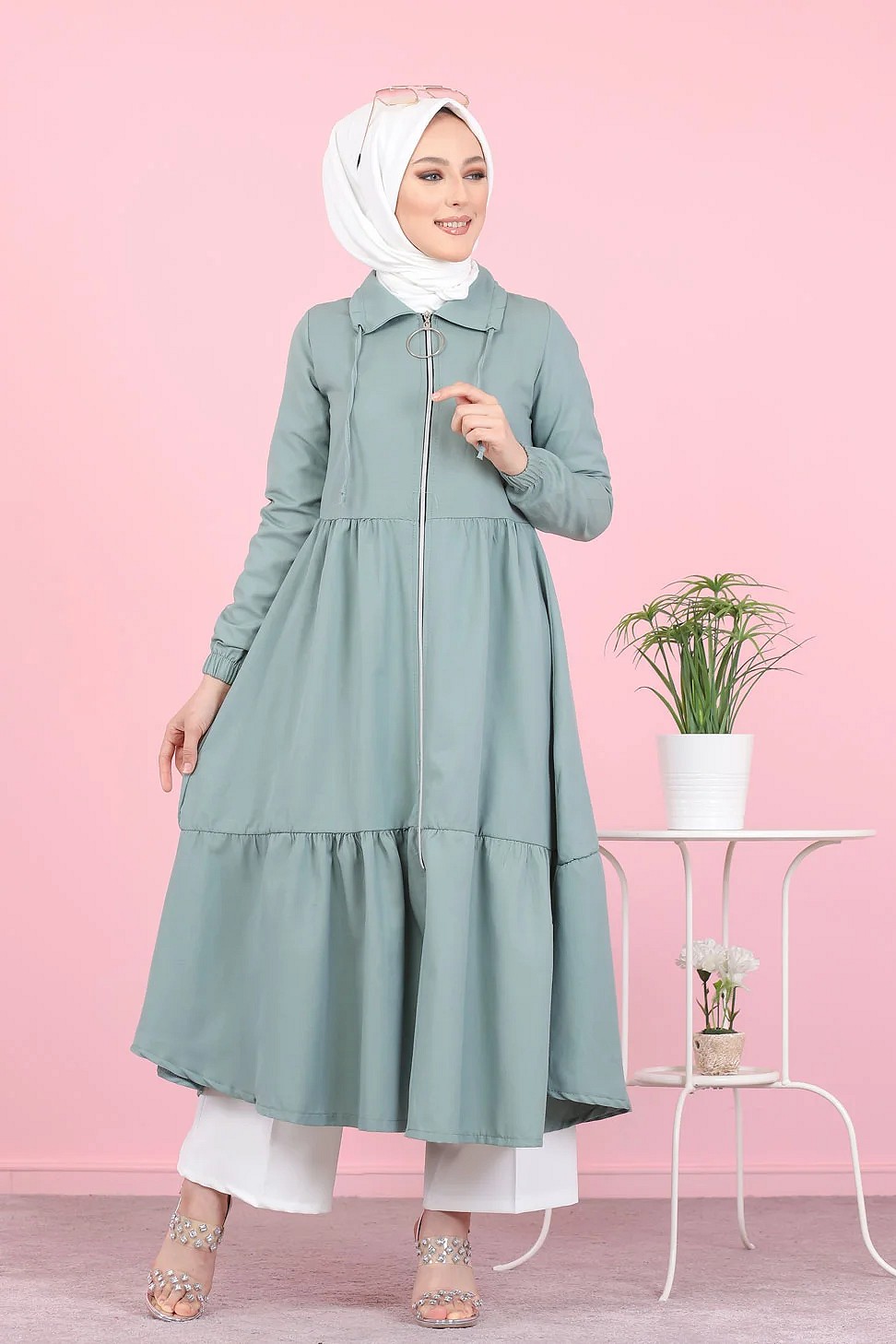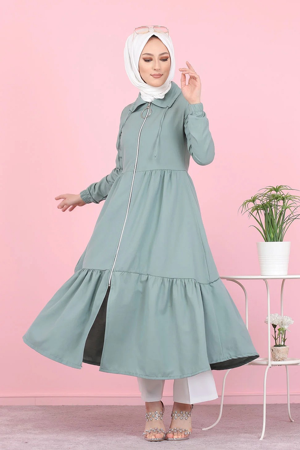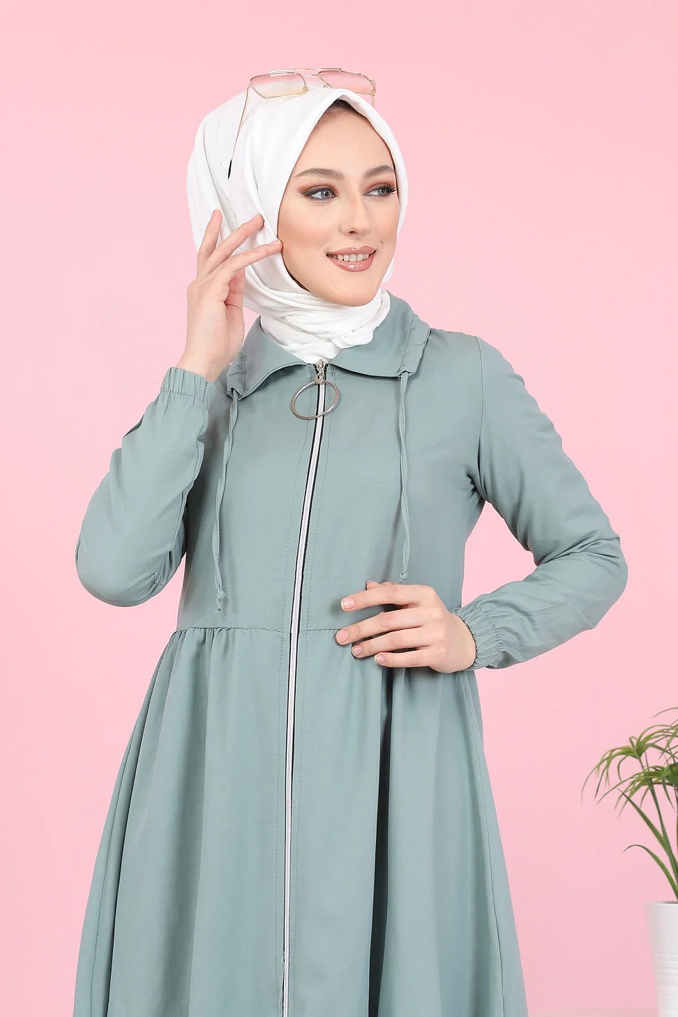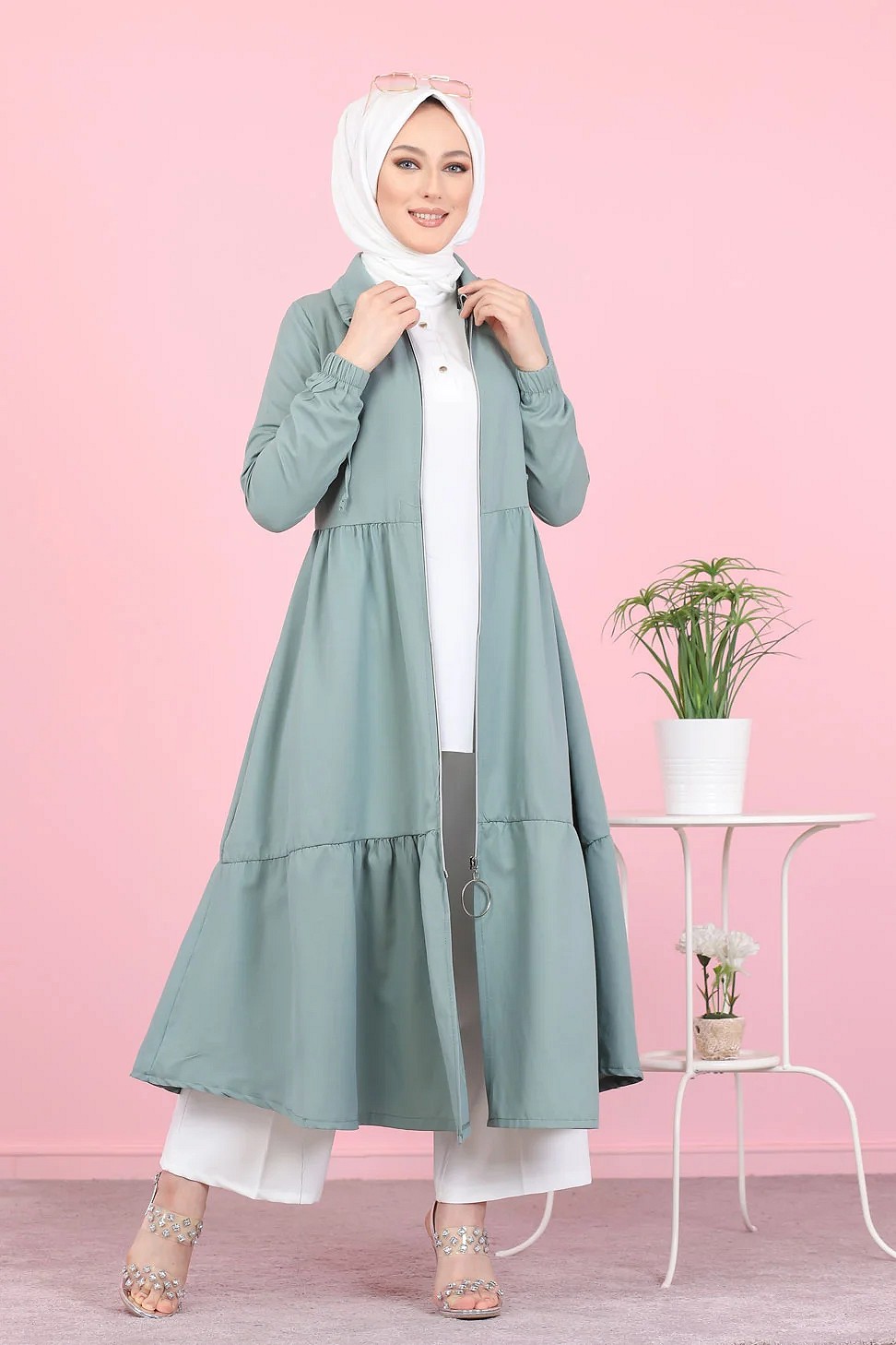 Veste zippée ample et légère mi longue (Vetement mastour pour femme voilée) - Couleur menthe Vetement & Accessoire