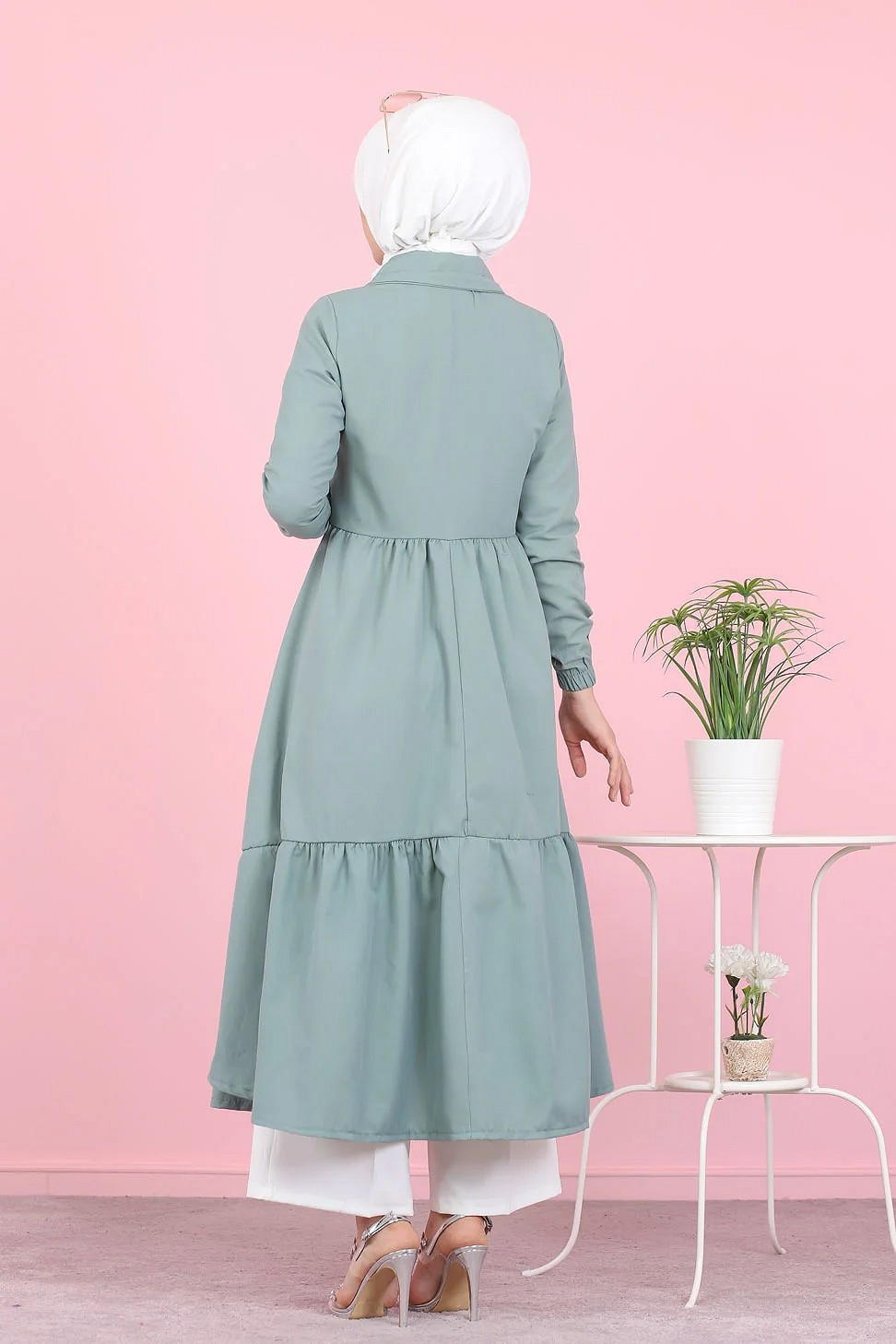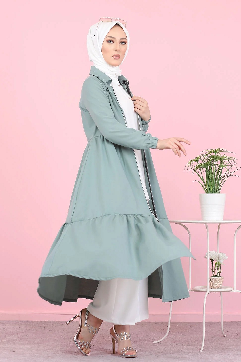 Veste zippee ample et legere mi longue (Vetement mastour pour femme voilee) - Couleur menthe
