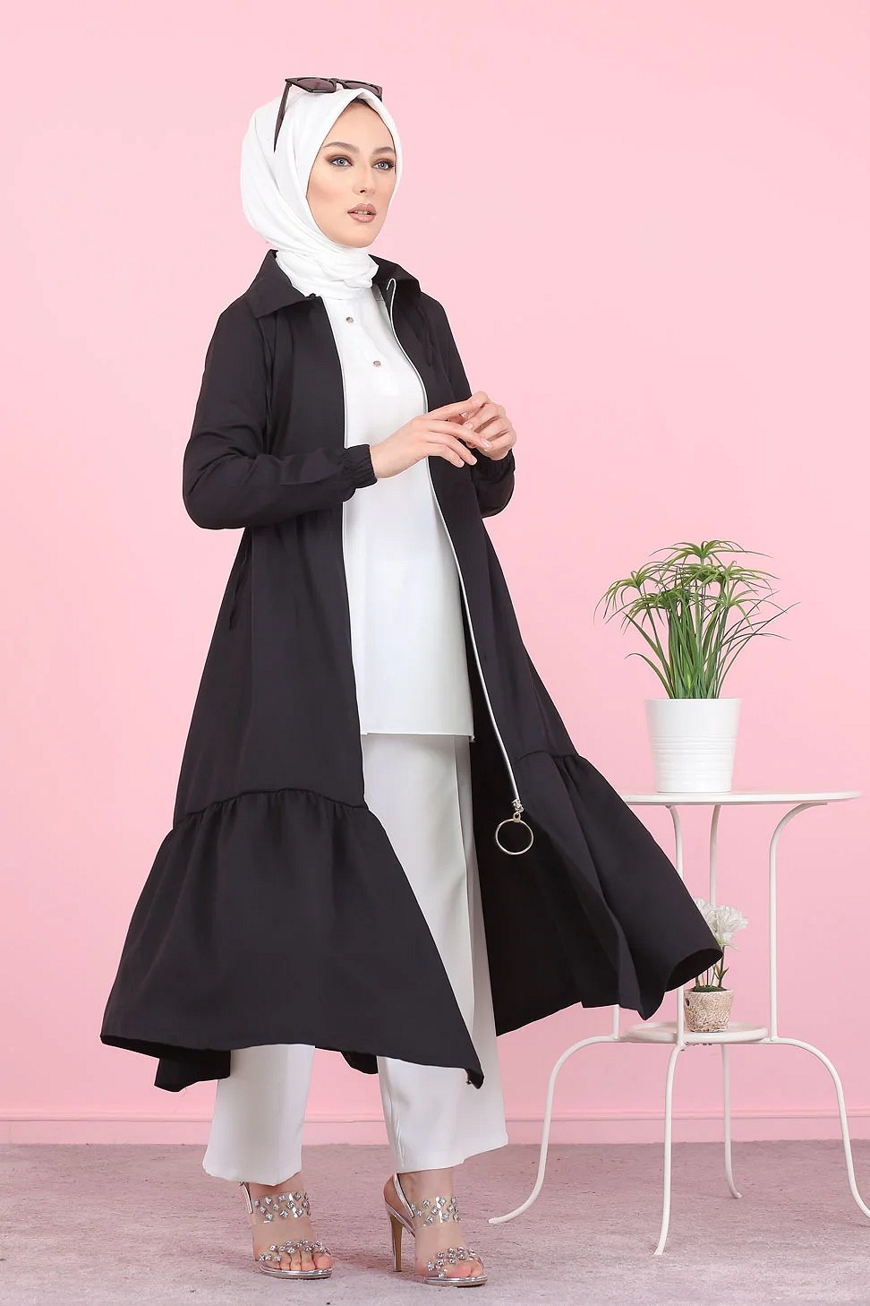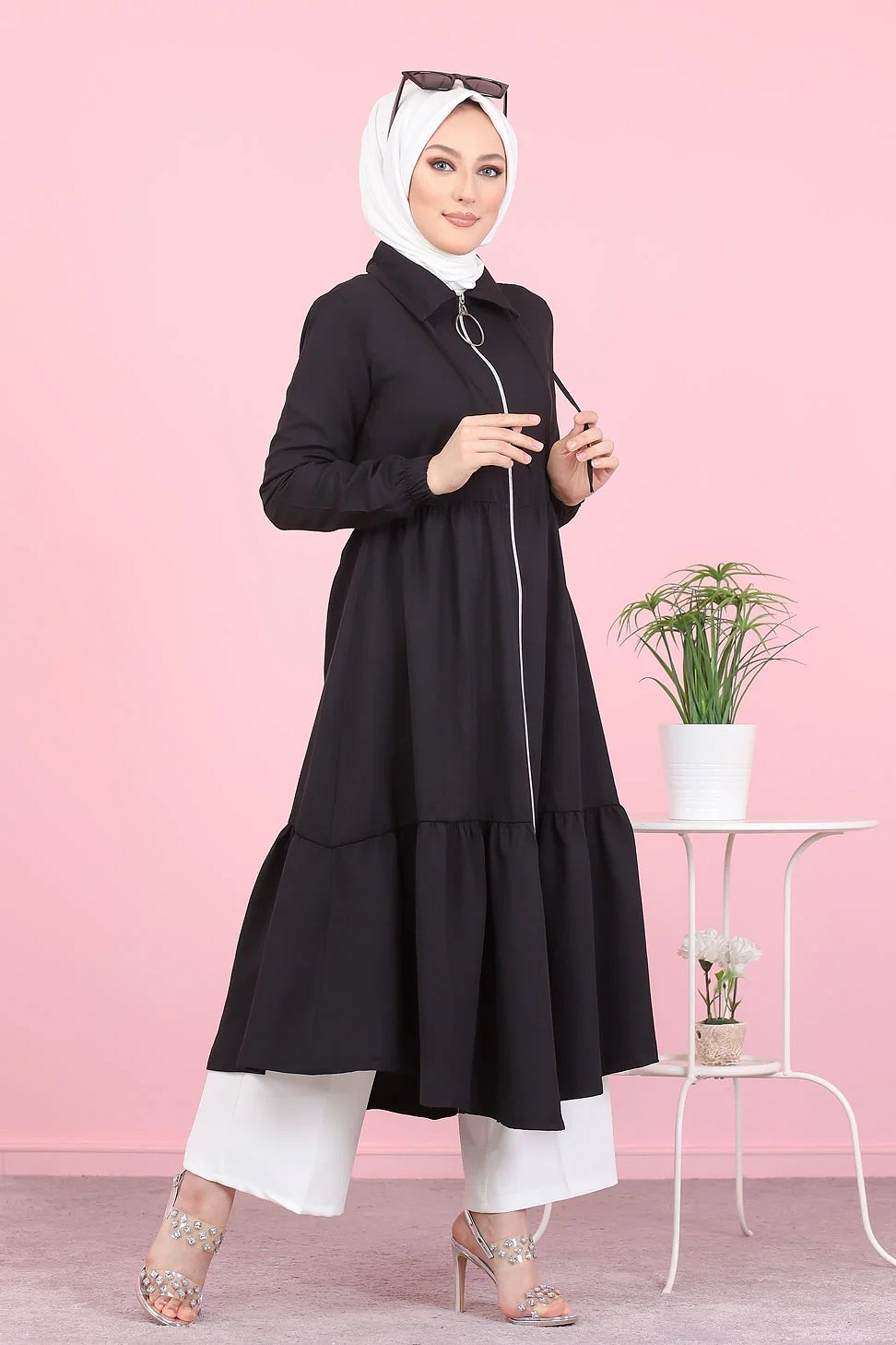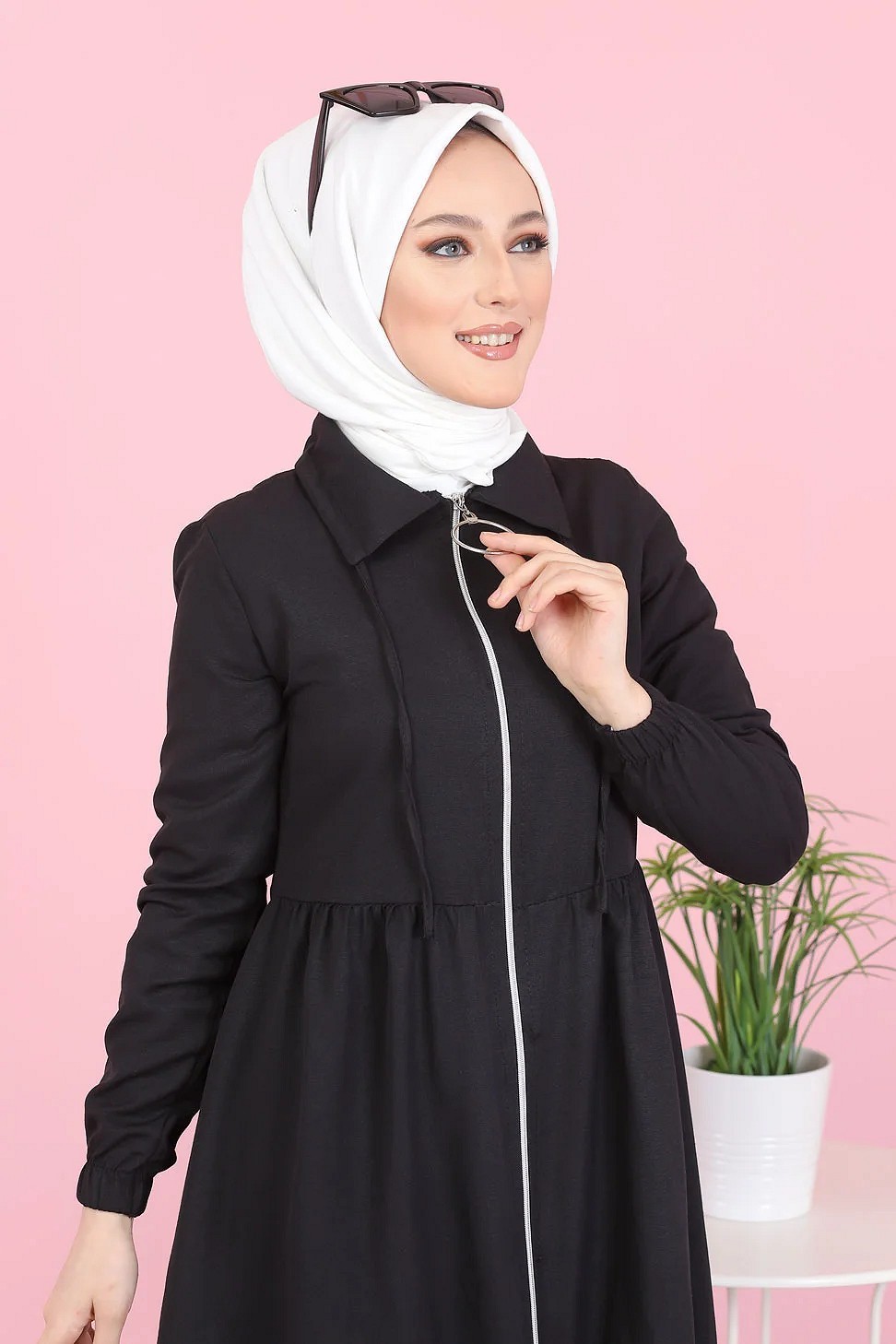 Veste zippée mi longue évasée (Vetement ample pour femme voilée) - Couleur noir Vetement & Accessoire