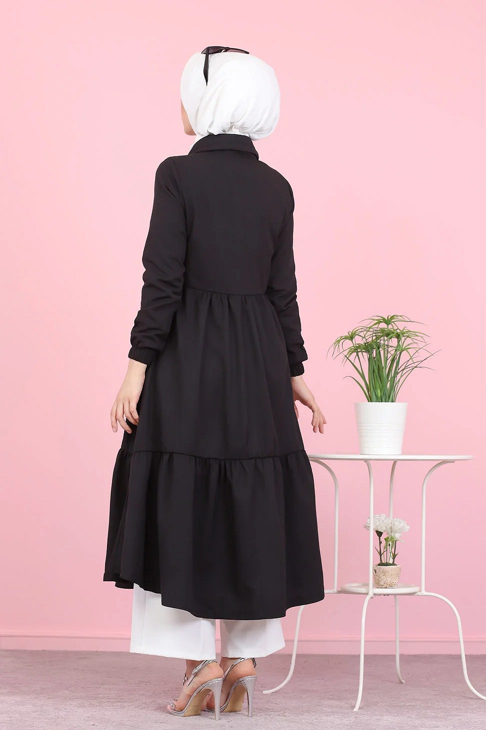 Veste zippee mi longue evasee (Vetement ample pour femme voilee) - Couleur noir