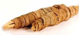Présenté en fagot d'environ 15 cm de long formé par une lanière d'écorce de Souak (siwak) repliée plusieurs fois sur elle-même.