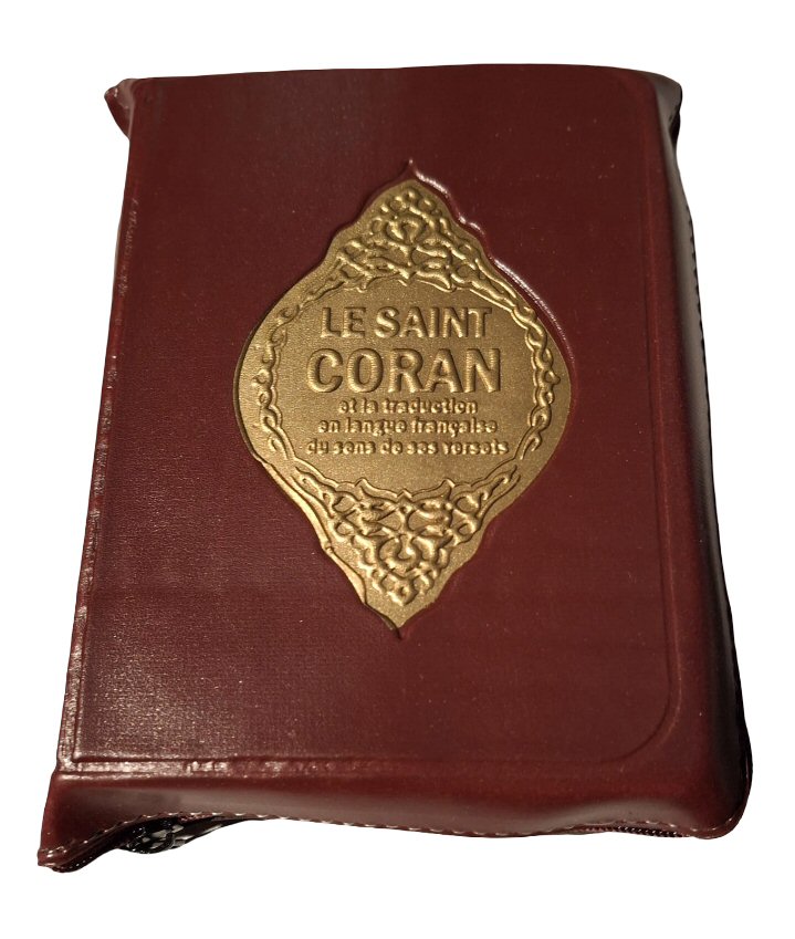 Le Saint Coran de poche bilingue (arabe-francais) avec pochette fermeture zip (10 x 14 cm) - Bordeaux