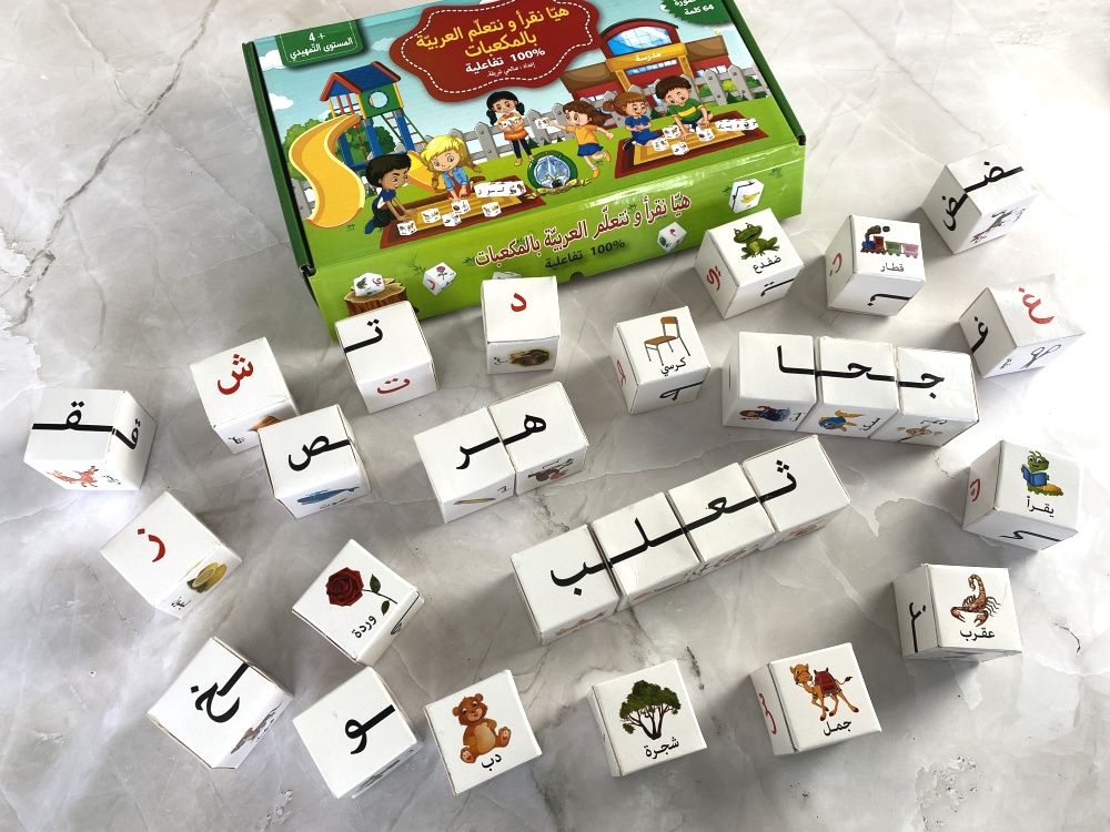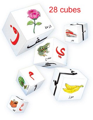 Les 28 cubes permettent de composer les mots arabes car ils contiennent toutes les formes des lettres (initiale, médiane, finale et isolée). Un très bon outil pédagogique.