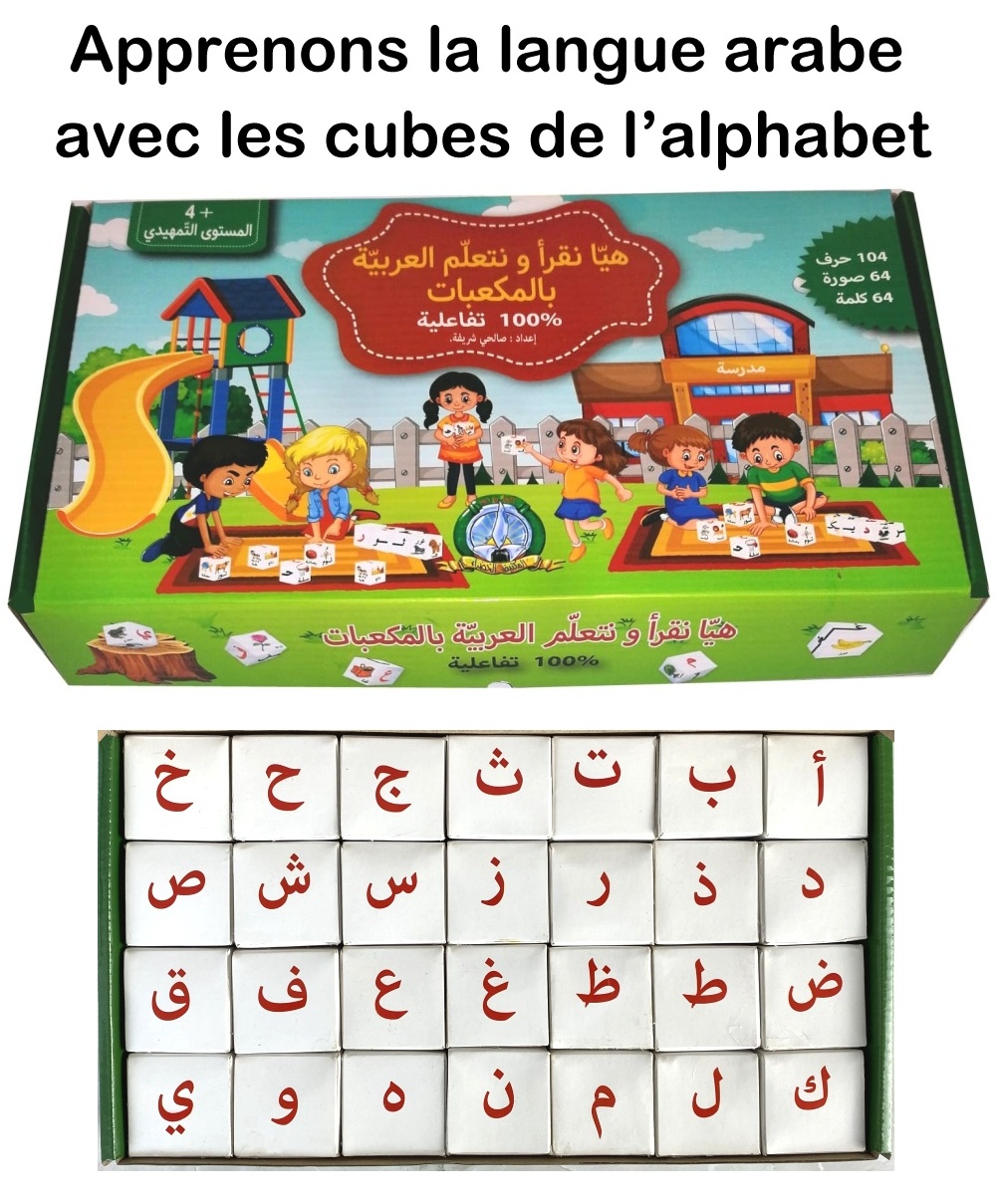 Pack Livre + Apprenons la langue arabe avec les cubes de l’alphabet (Boite de 28 Cube de lettres arabes) - هيا نقرأ ونتعلم العربية بالمكعبات - REF. 39424 (26.80 €) - En Promotion à 22.90 €