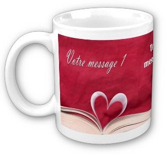 Mug Personnalisé (prénom, message, etc.) : Livre avec feuilles sous forme de coeur - REF. 13222 (9.90 €) |