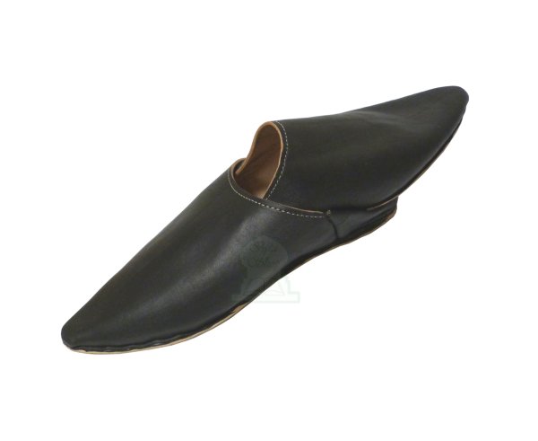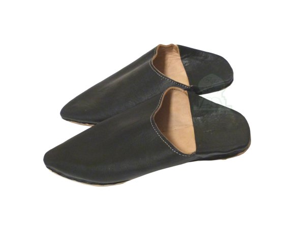 Babouches citadines Fassi traditionnelles marocaines pour homme en cuir noir simple - REF. 16443 (21.90 €)
