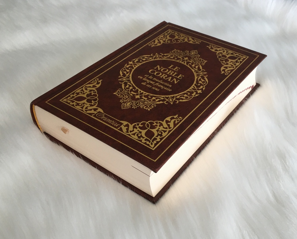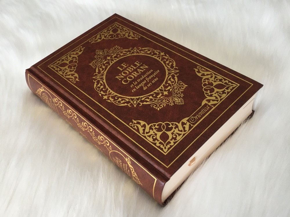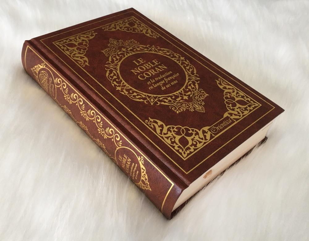 Le Noble Coran et la traduction en langue française de ses sens - bilingue arabe-français - Couverture rigide similicuir marron avec dorure & index - REF. 1700 (24.90 €)