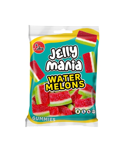 Bonbons confiseries Halal : Tranches de pastèques sucrées (100g) - Jelly Mania Water Melons - REF. 20779 (1.50 €) - En Promotion à 1.20 €
