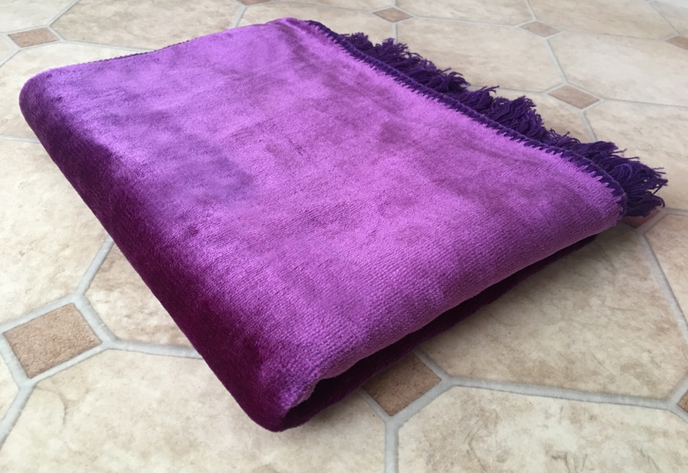 Tapis de prière ultra-doux de type velours avec couleur uniforme, sans aucune représentation ou dessin dessus pour une concentration maximale dans la prière.