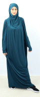 Ce Jilbab deux pièces est composé d’un demi-djilbab cache menton avec bandeau intégré manches élastiques, et d’une jupe.