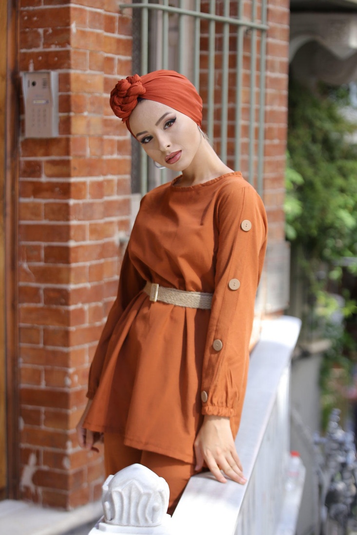Tunique ample évasée boutonnée pour femme (Mode islamique) - Couleur Brique - REF. 33824 (22.00 €)