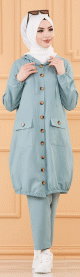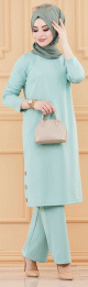 Ensemble tunique à boutons et pantalon assorti pour femme (Tenue hijab classique) - Couleur menthe - REF. 36016 (36.90 €)