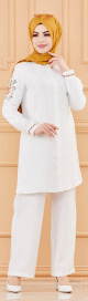 Ensemble femme avec broderies (tunique/chemise et pantalon) - Couleur blanc - REF. 36338 (39.90 €)