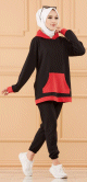 Ensemble survêtement décontracté (Vêtement de sport pour femme voilée) - Tunique couleur noir et pantalon rouge - REF. 36675 (29.00 €)