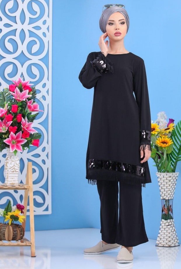 Ensemble décontracté et sport pour femme (Boutique vêtement musulman en ligne) - Couleur noir et gris - REF. 36415 (29.90 €) - En Promotion à 24.90 €