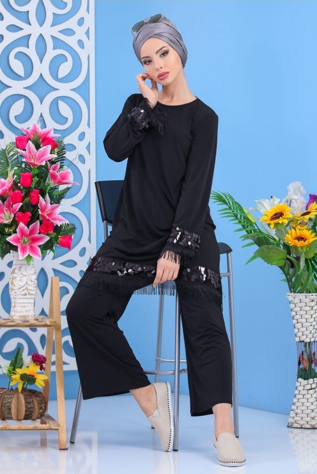 Ensemble style Jabador femme avec broderies - Deux pièces tunique pantalon - Couleur Noir - REF. 31071 (29.90 €)