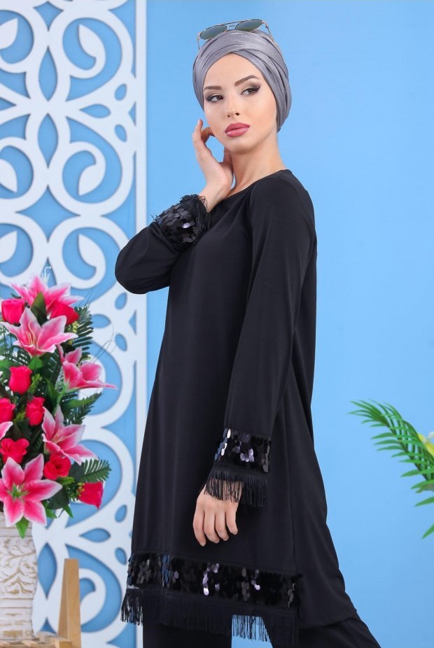 Ensemble tunique cintrée et pantalon - Couleur noire (Vêtement décontracté et moderne pour femme) - REF. 30362 (29.90 €) - En Promotion à 24.90 €