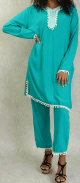 Ensemble deux pièces tunique pantalon style Jabador femme - Couleur Vert émeraude - REF. 32855 (28.00 €)