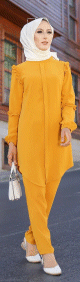 Ensemble femme deux pièces tunique et pantalon (Vetement de ville Hijab mastour) - Jaune moutarde - REF. 33897 (35.00 €)