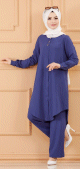 Ensemble ample pour femme : tunique et pantalon (Vêtement chic style habillé pour femme musulmane) - Couleur bleu pétrole - REF. 36615 (39.90 €)