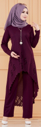 Ensemble découpé au laser : Tunique et pantalon assorti pour femme (Vêtement hijab classique) - Couleur prune - REF. 37088 (38.00 €)