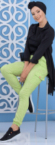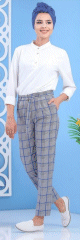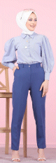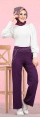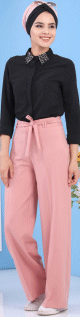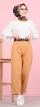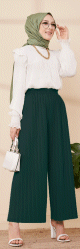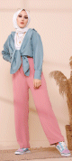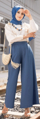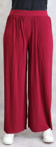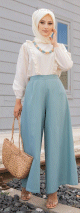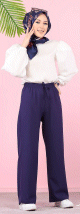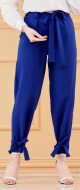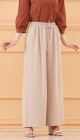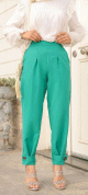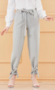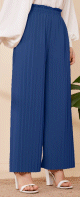 Pantalon coupe ample, fermeture à glissière sur le côté, accompagnée d'une ceinture à nouer à la taille, tissu peigné.