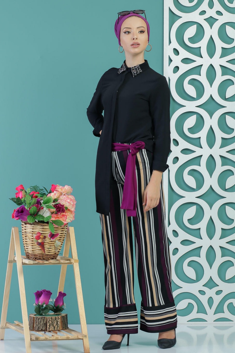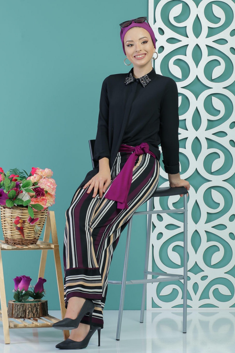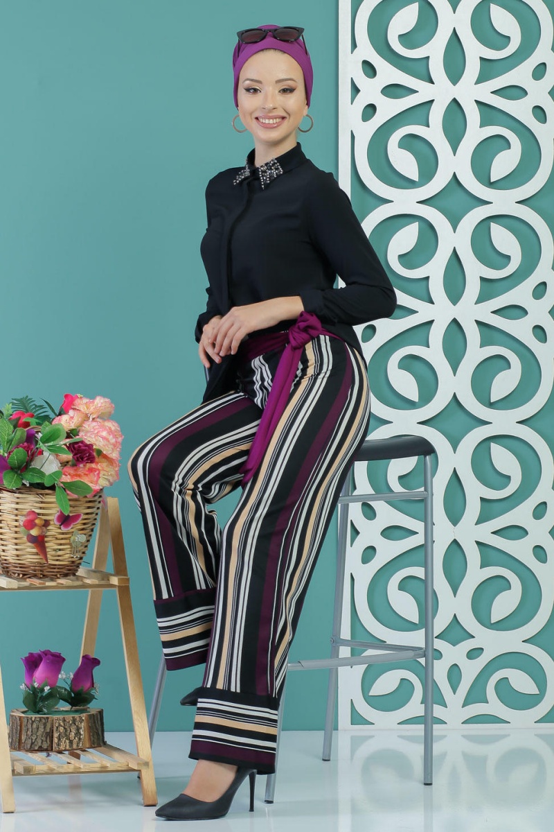 Ce pantalon rayé ultra moderne qui sort de l'ordinaire avec sa matière confortable et fluide se portera aussi à la maison qu'à l’extérieur. Ces différentes couleurs qui le composent vous permettront de l'assortir sans problème.